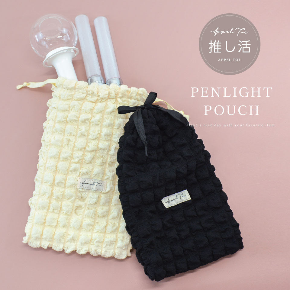 A drawstring bag that can hold pen lights in various shapes, from stick-shaped to three-dimensional!