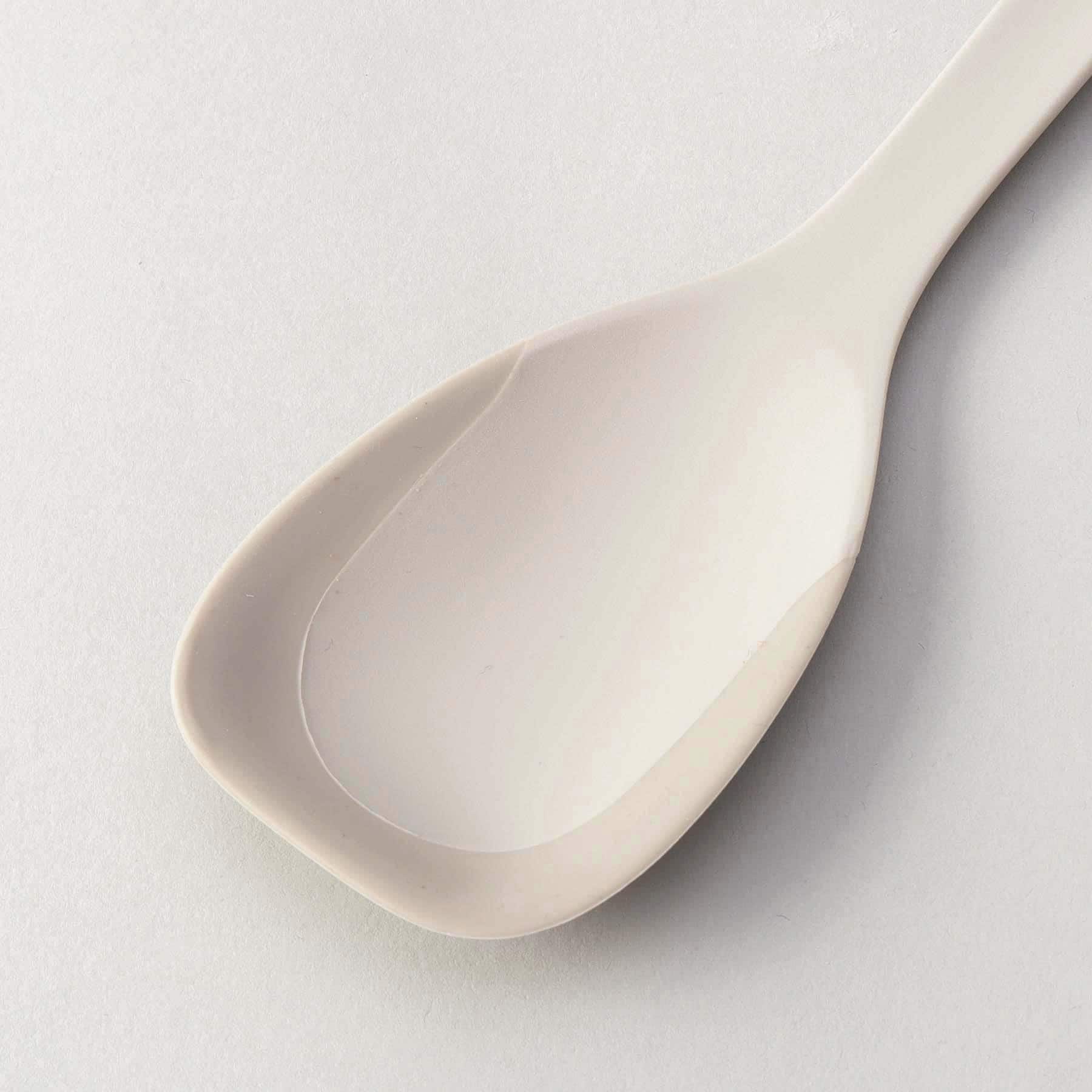 The tip of the spoon fits the pot's surface, allowing you to scoop without leaving anything behind.