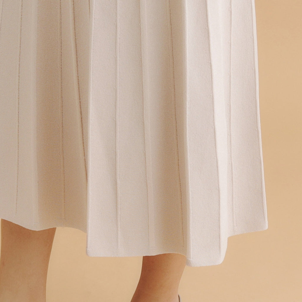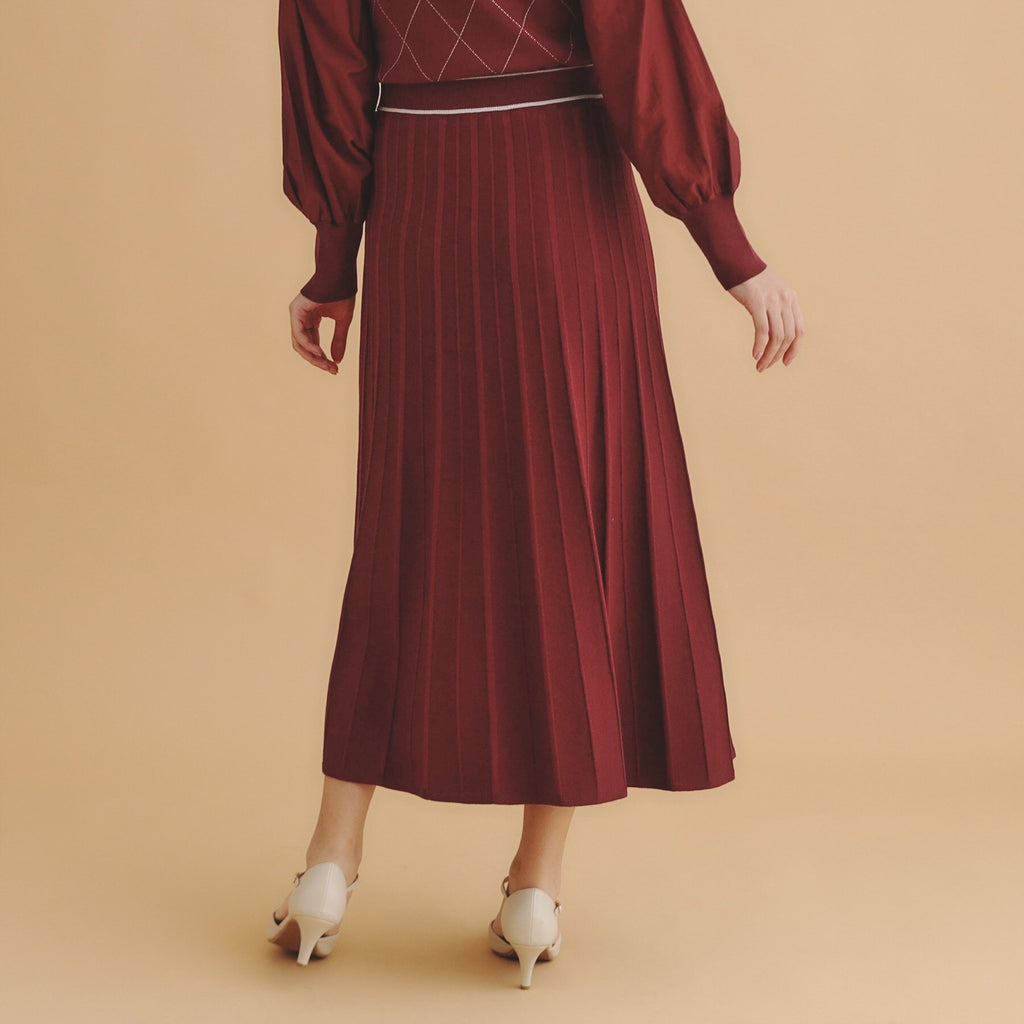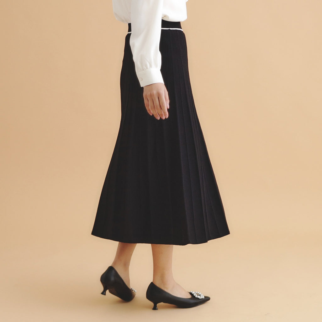 ・A knit flare skirt with a fresh bicolor line at the waist.