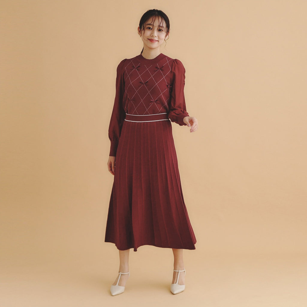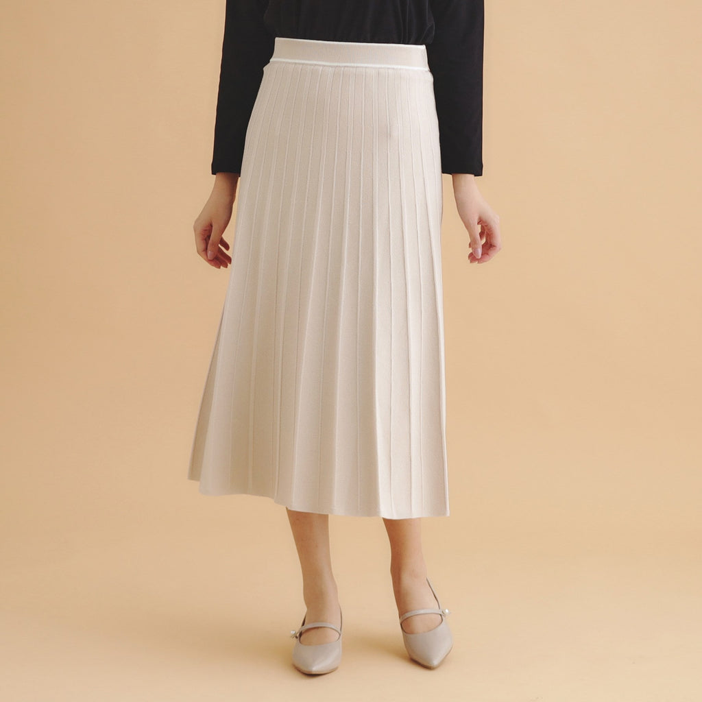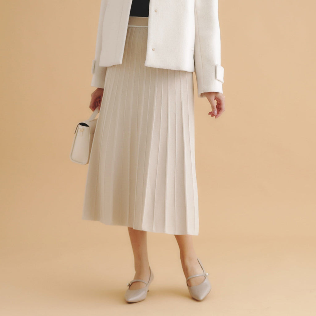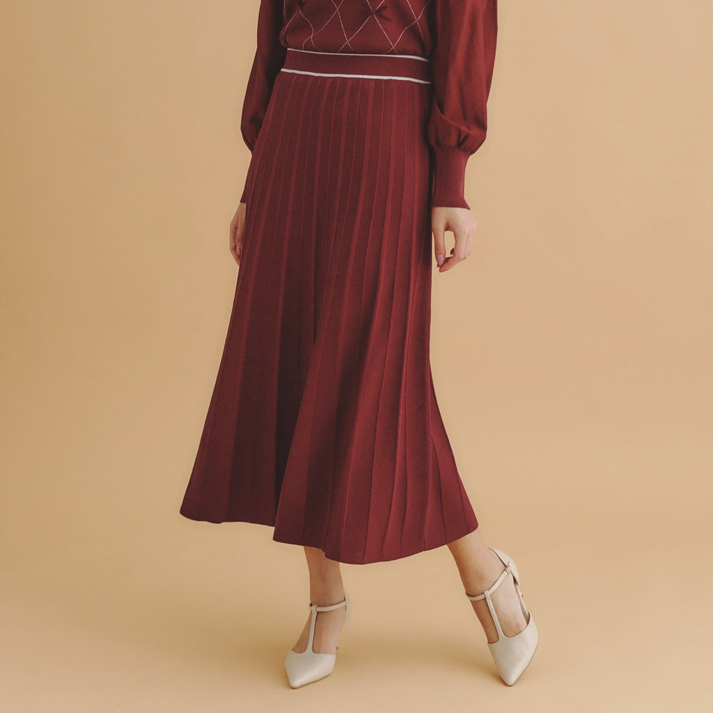 ・A knit flare skirt with a fresh bicolor line at the waist.
