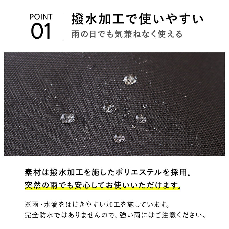 1:撥水加工で使いやすい素材は撥水加工を施したポリエステルを採用。