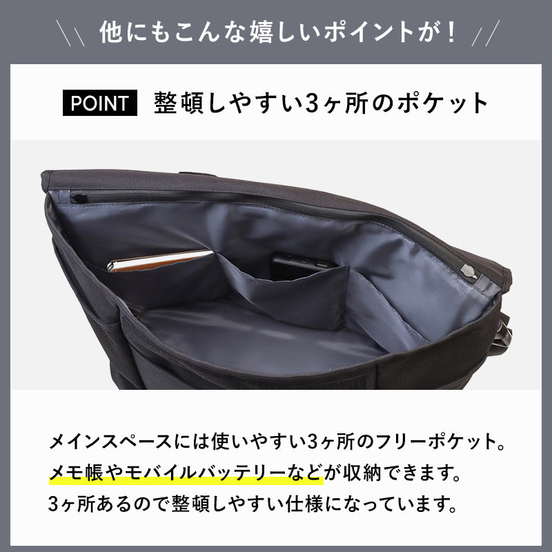 メインスペースには使いやすい3ヶ所のフリーポケット。