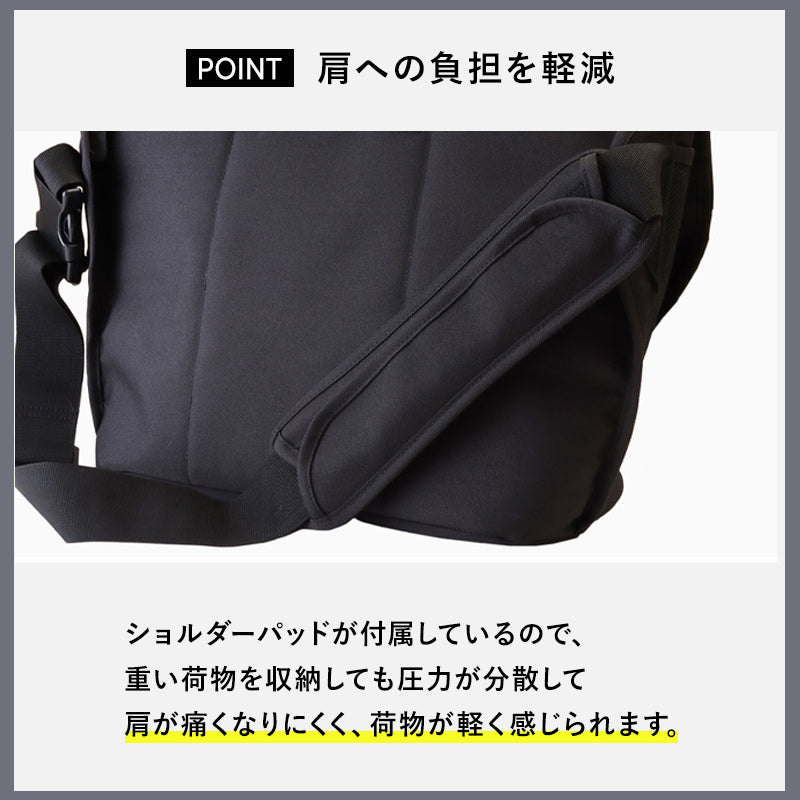 重い荷物を収納しても圧力が分散して肩が痛くなりにくく、荷物が軽く感じられます。