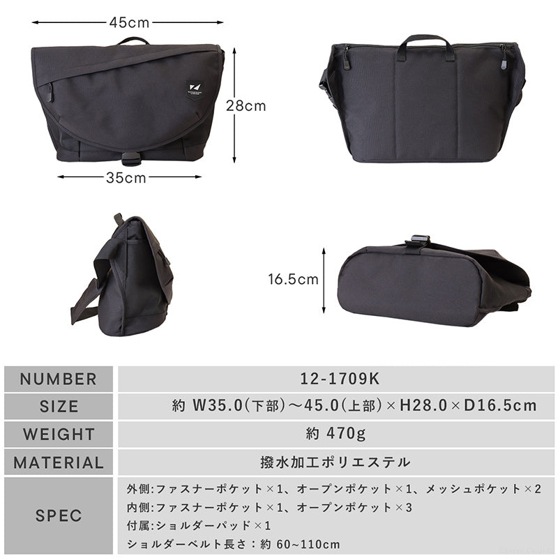 ゼロクラッシュ ZERO CRASH メッセンジャーバッグ ボディバッグ ショルダーバッグ レディース メンズ 撥水ポリ ZERO CRASH ゼロクラッシュ ブランド 12ー1709K