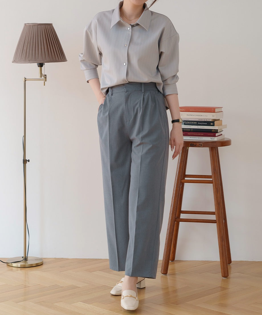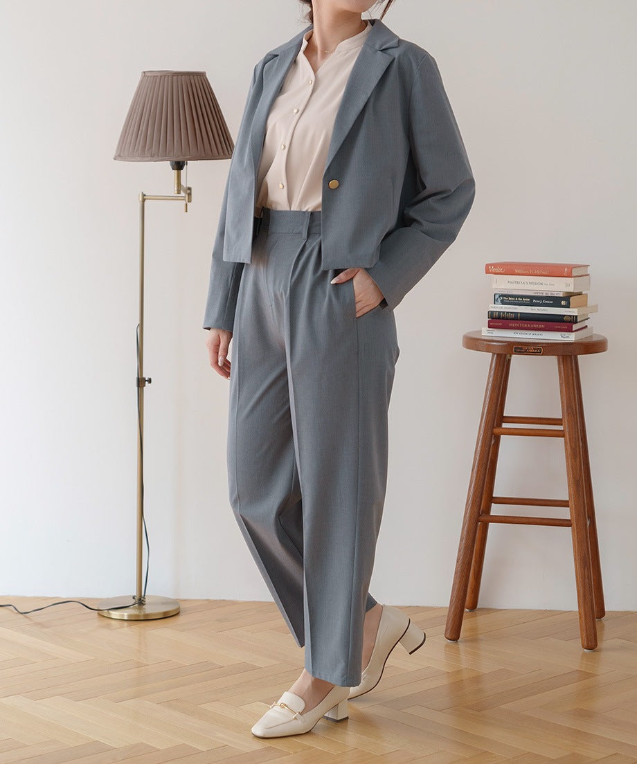 クロップド丈で、オフィススタイルにもカジュアルな日にもフィットします。