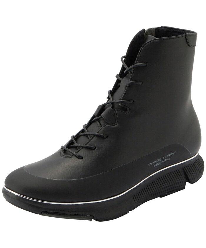 素足のような軽さと、長時間の歩行でも足への負担が少ないクッション性のよさが特長の、PEDALAシリーズ。アシックス独自の機能を搭載し、環境に配慮したカジュアルシューズです。エネルギー消費を抑えながら長く走り続ける、ランニングシューズの「エナジーセービング」機能を採用。つま先部分をカーブ形状にすることで、歩行時に足首の屈曲を減らし、足首関節のエネルギー消費を抑えて歩行効率を高めています。ソールには「ガイダンスライン」構造を採用。ソールの中央に縦に配置した溝で重心移動が安定し、スムーズな歩行をサポートします。ミッドソールには軽く耐久性のある、植物由来のセルロースナノファイバーを使用した環境配慮型素材であるFF BLASTを採用し、かかと部に衝撃緩衝機能GELを搭載。アウターソールには耐摩耗性に優れたAHARラバーを採用しています。アッパーは、基材にリサイクル素材を用いた人工皮革を使用。クッション性に優れたハーフカップ中敷を採用。包み込むような履き心地のブーツアイテムは、内側のファスナーにより脱ぎ履きも簡単。シューレースでフィット感の調節が可能です。洗練されたデザインで、日常のさまざまなシーンで活躍するアイテム。2Eラウンドラストモデルです。