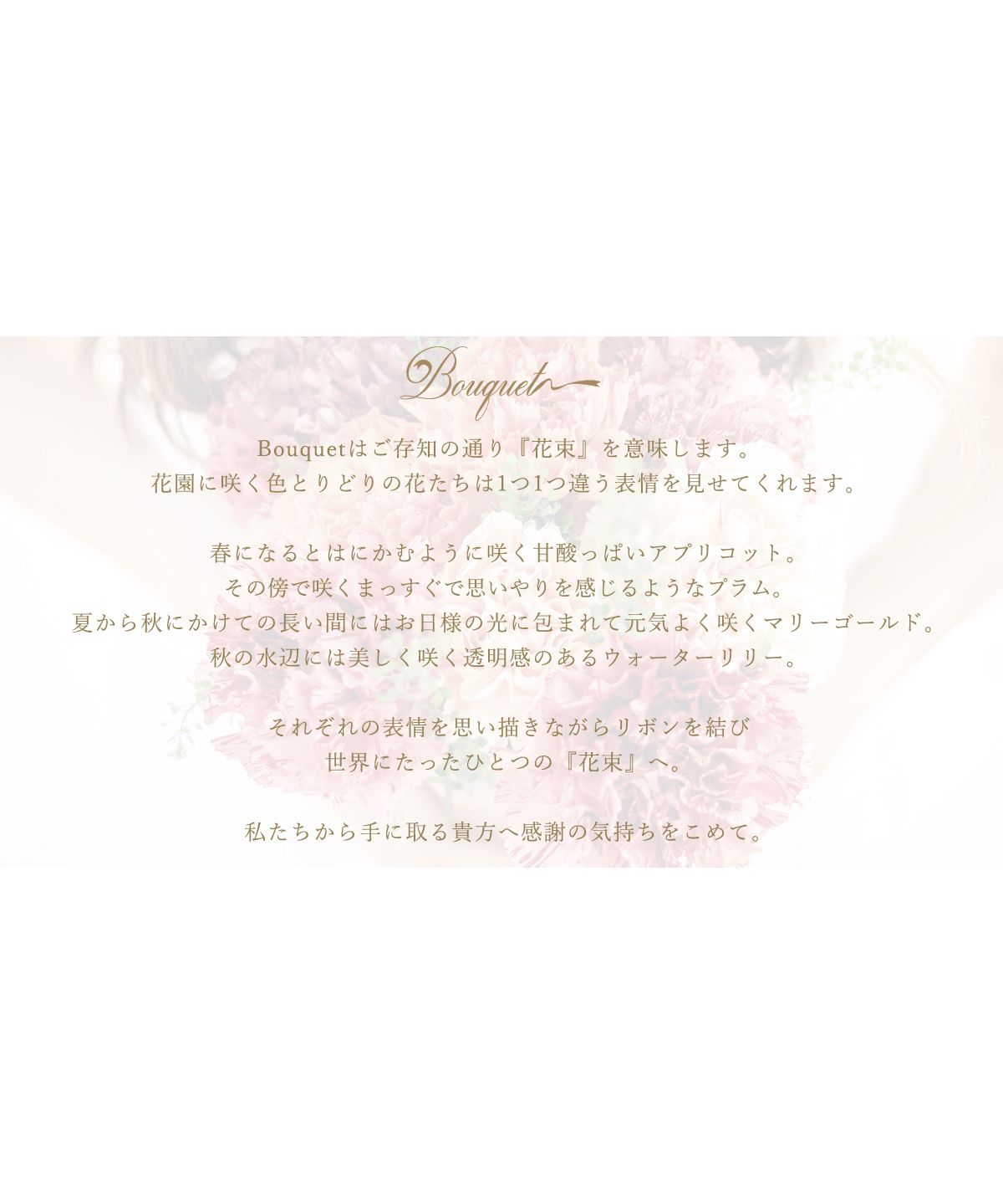 Bouquetはご存知の通り『花束』を意味します。
