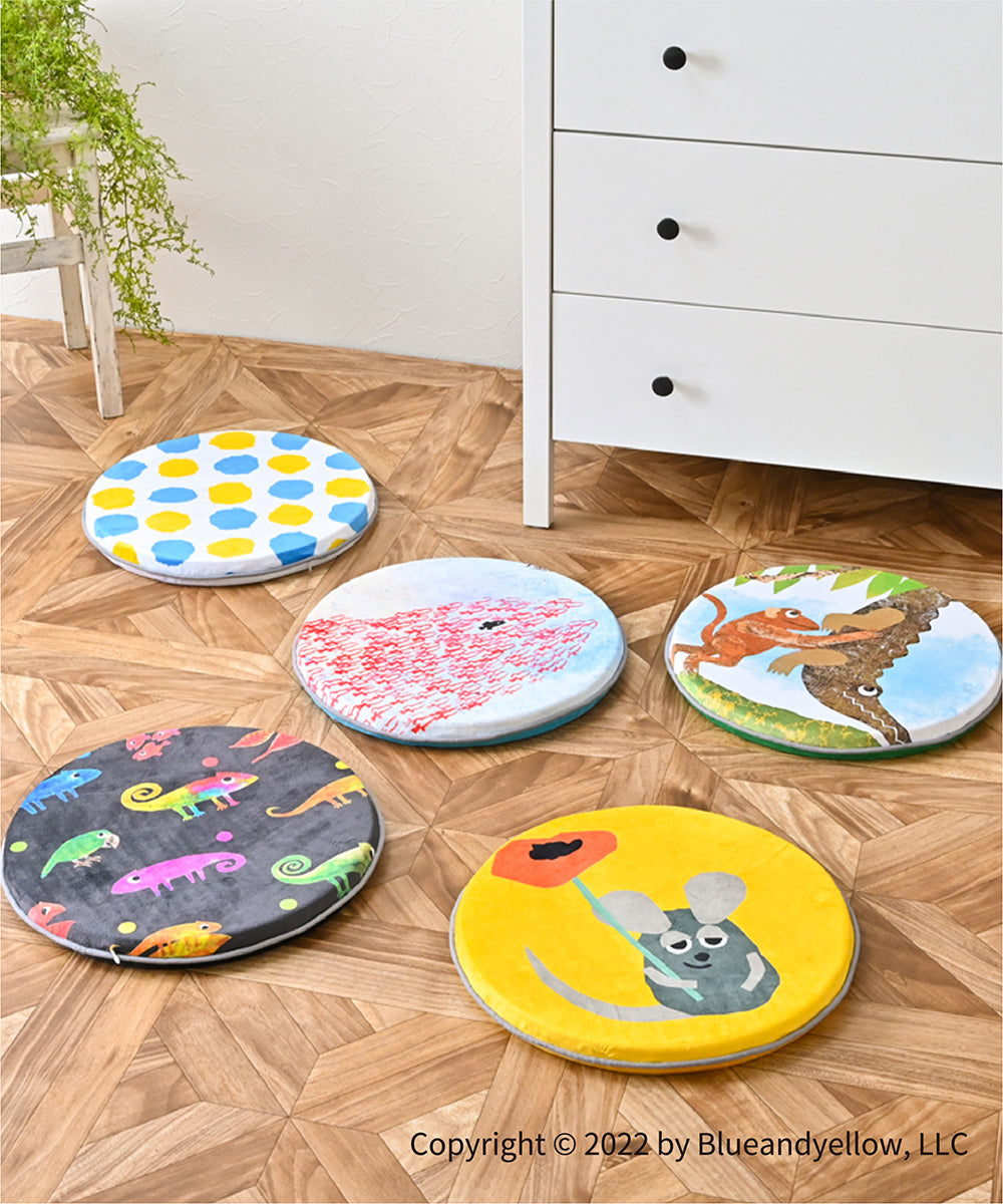 可愛いレオ・レオニの絵本の世界観を楽しむことのできる丸型シートクッション。