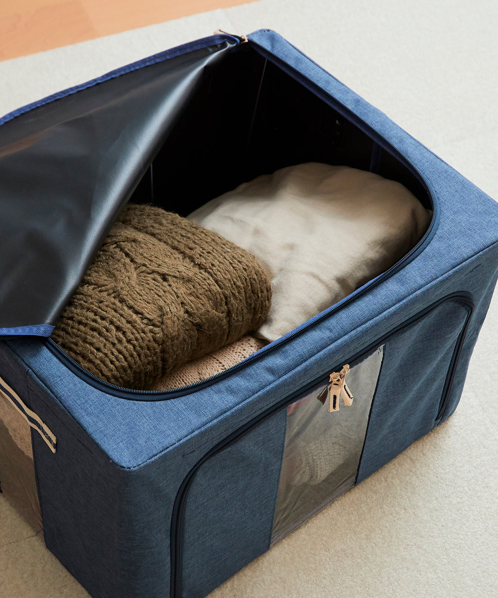 衣類やゴチャゴチャした小物などを収納するのに便利な収納ボックス。