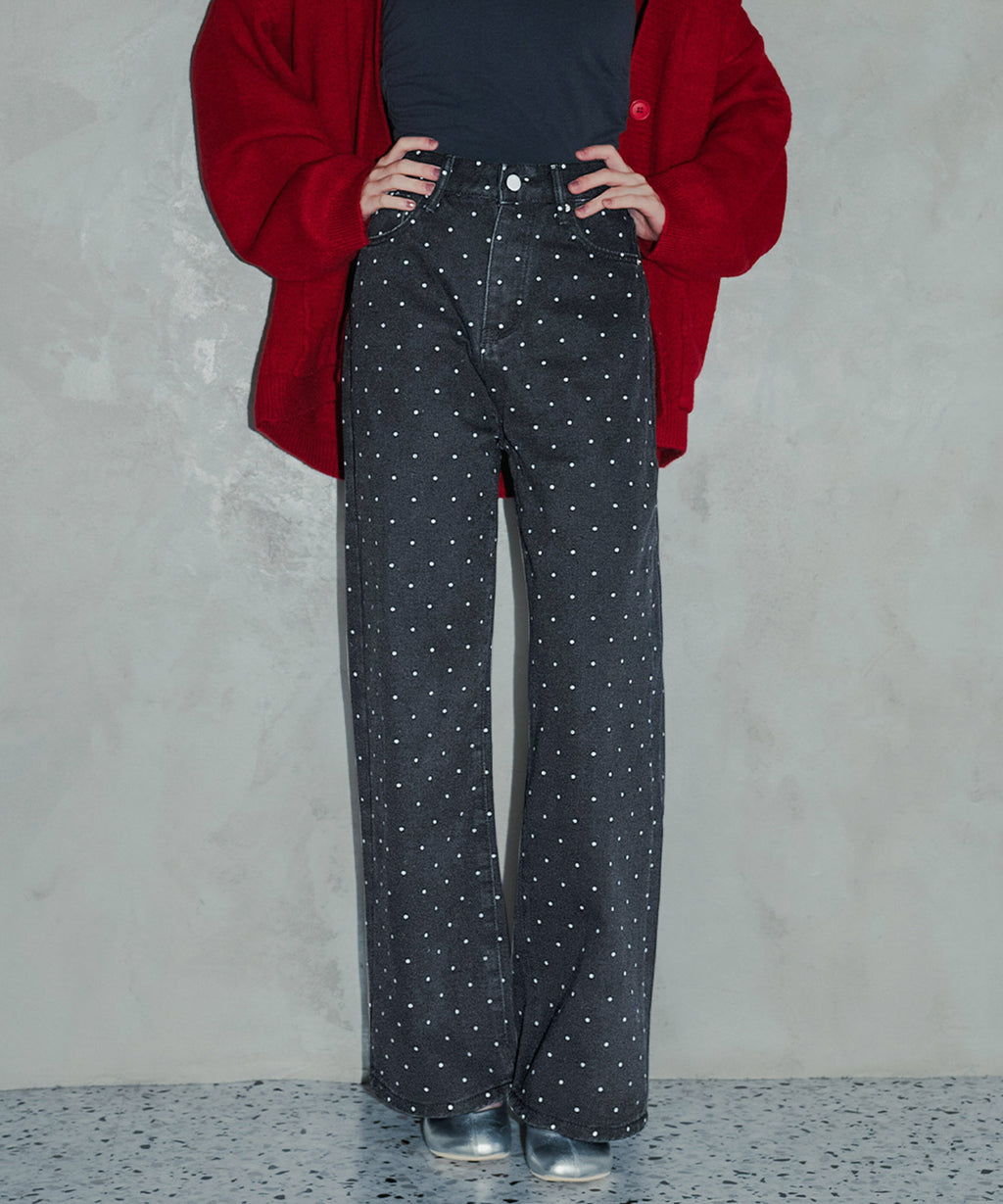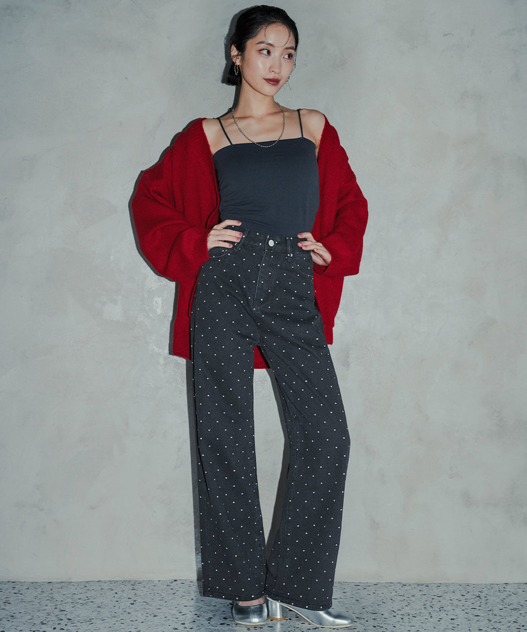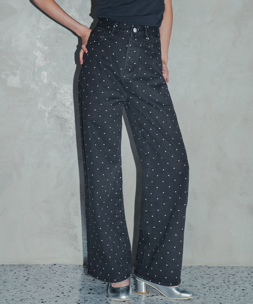 トレンド感あふれるドットデザインのストレートパンツ。