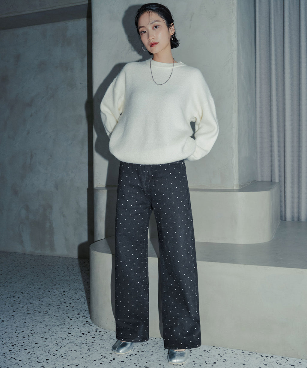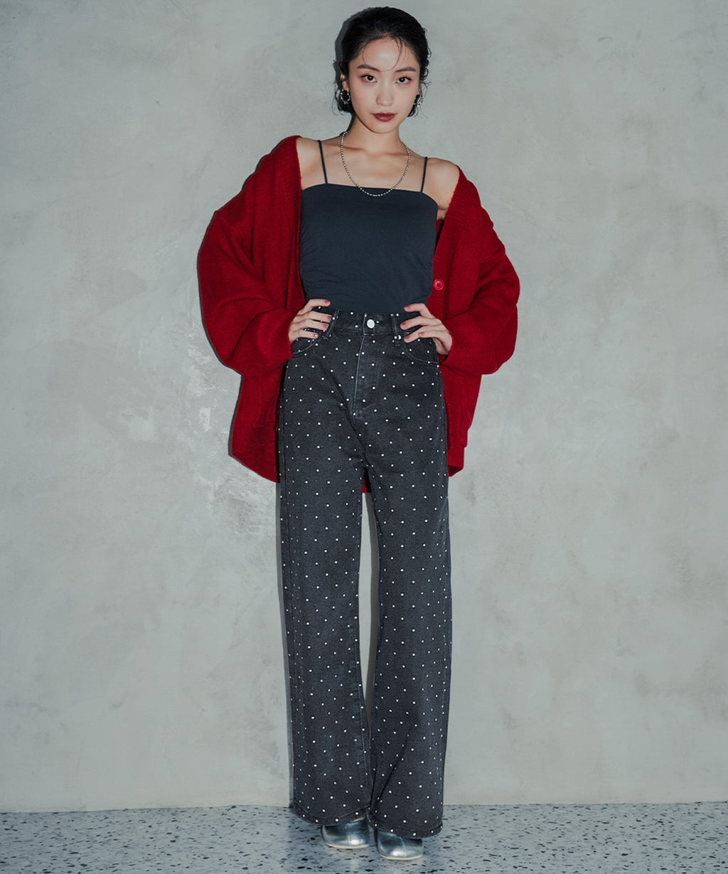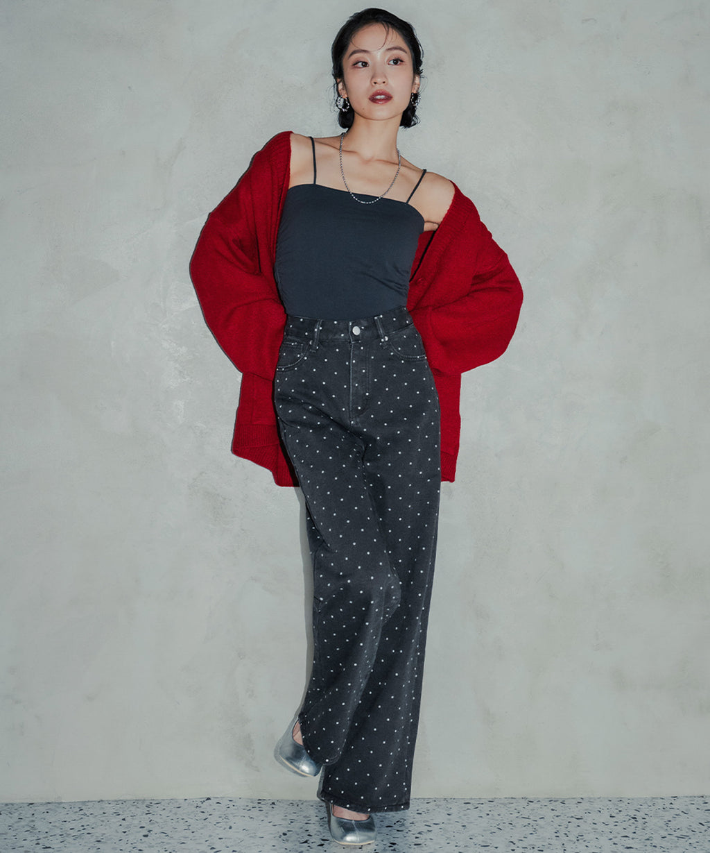 トレンド感あふれるドットデザインのストレートパンツ。