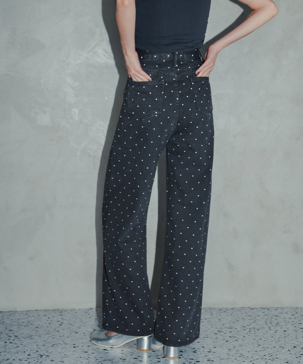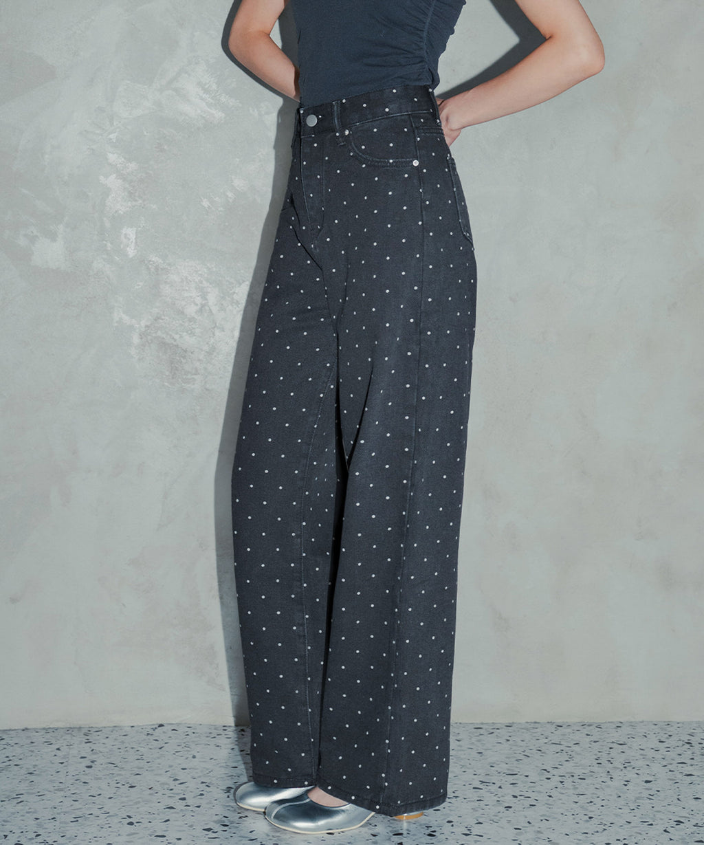シンプルながらも存在感のあるドット柄が、コーディネートにアクセントを加えます。