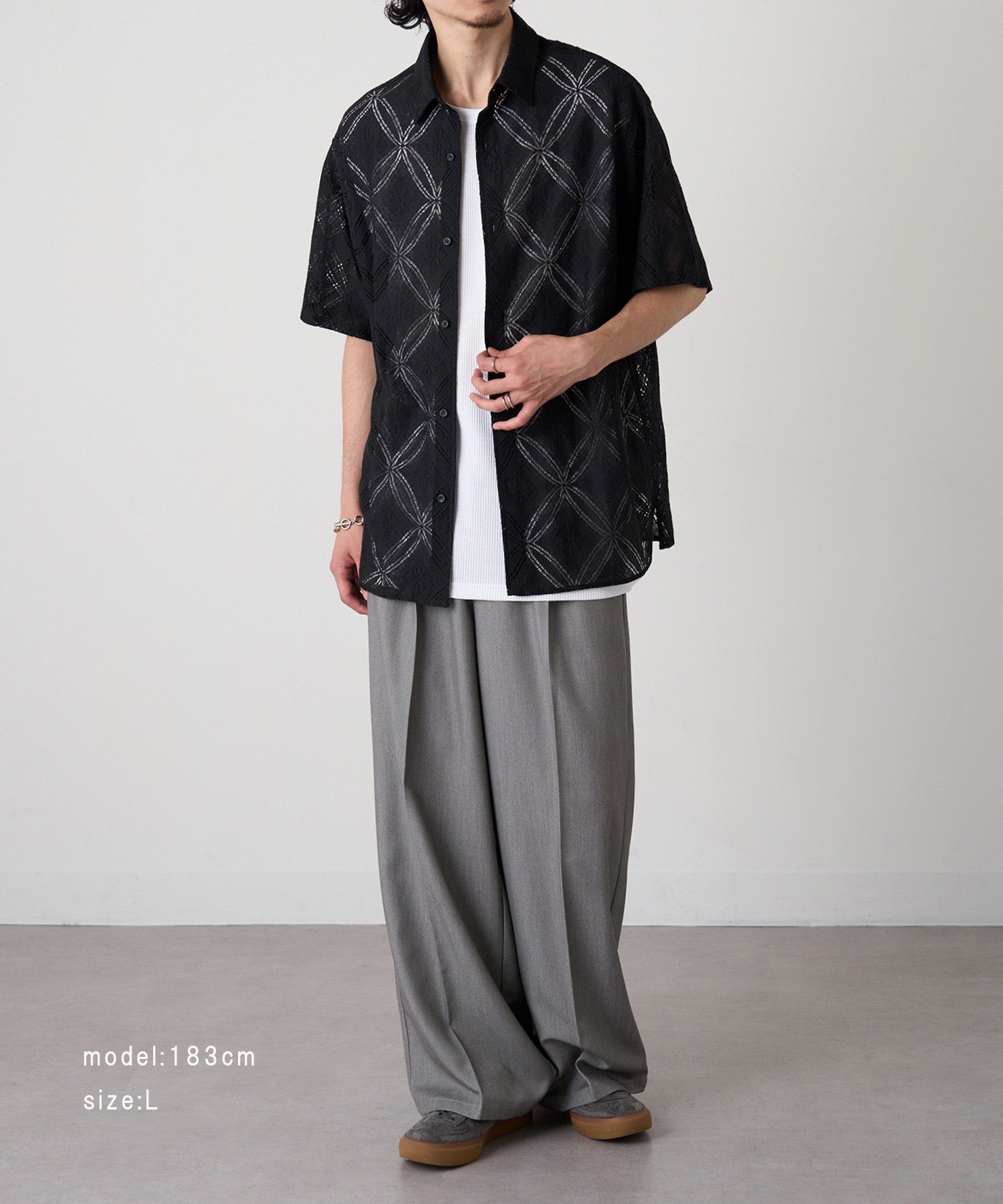 ・トレンドの涼しげな透かし柄の半袖シャツ。