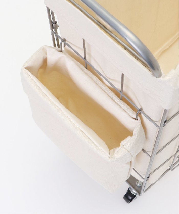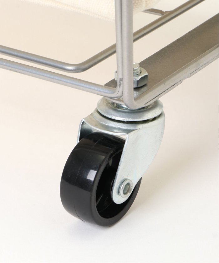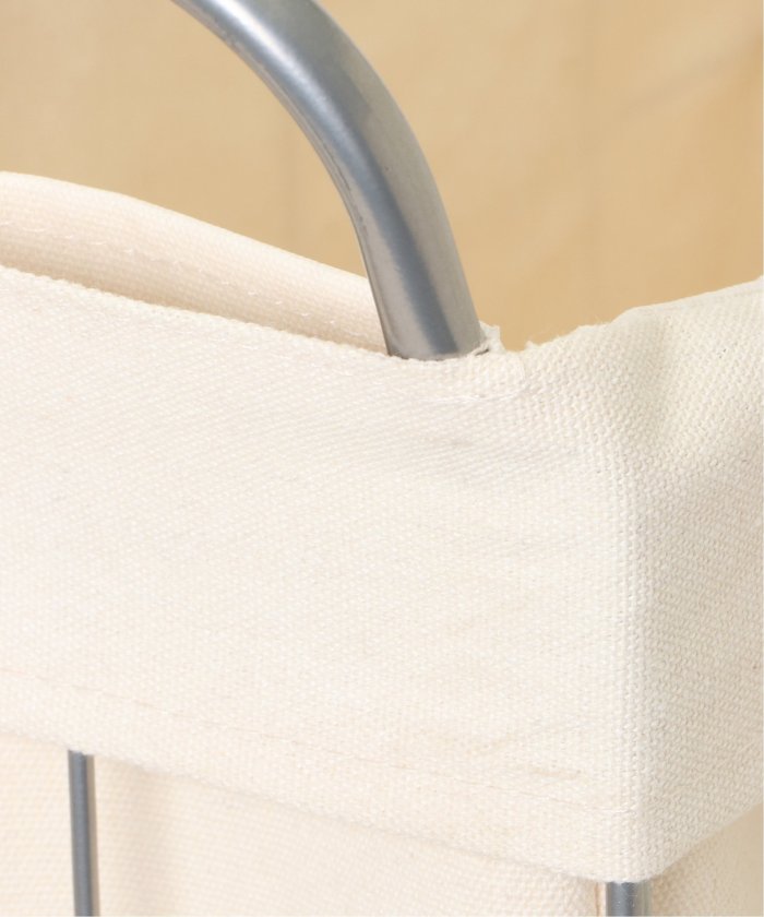 ランドリーバスケット スクエア キャスター付き38リットルイヤーは軽くて丈夫なスチール製、ファブリックカバーは汚れが付着しづらいラミネート加工を施しています。