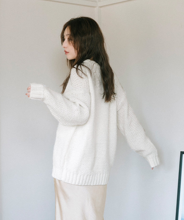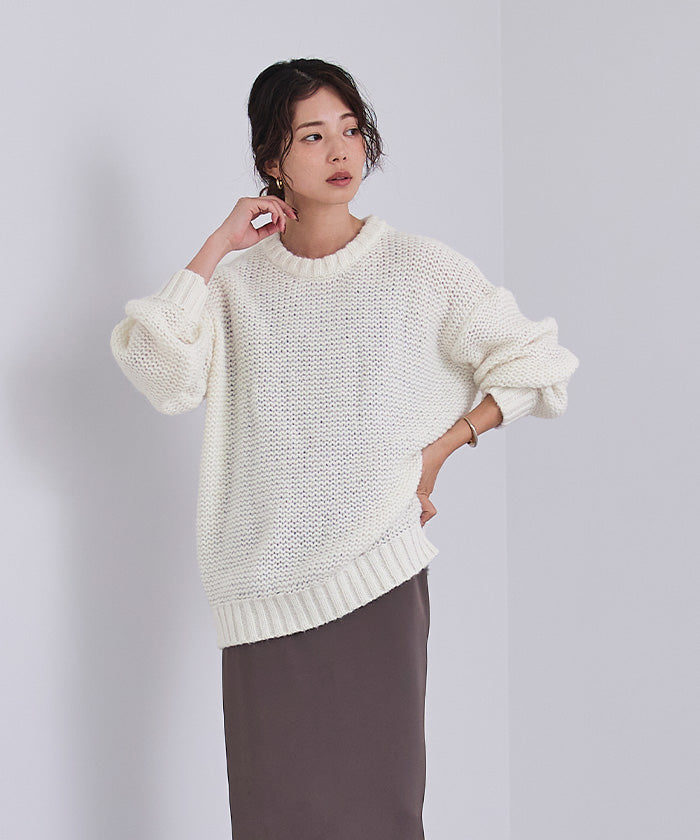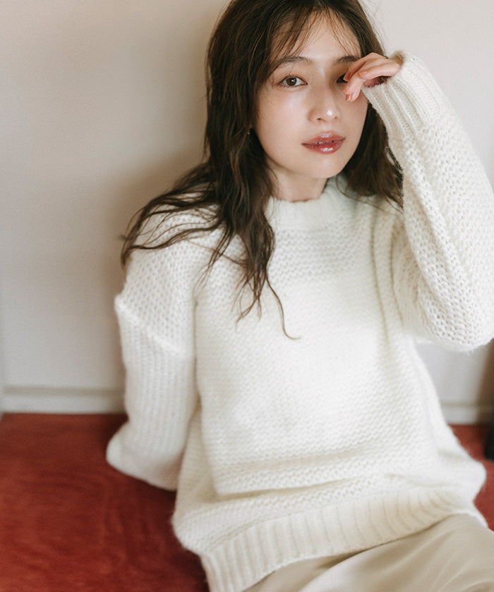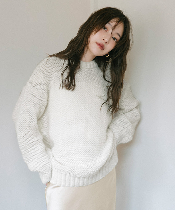 ざっくりとローゲージで編まれているので柔らかい印象を演出。