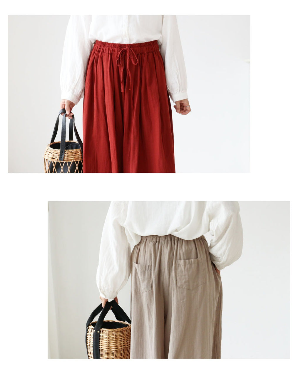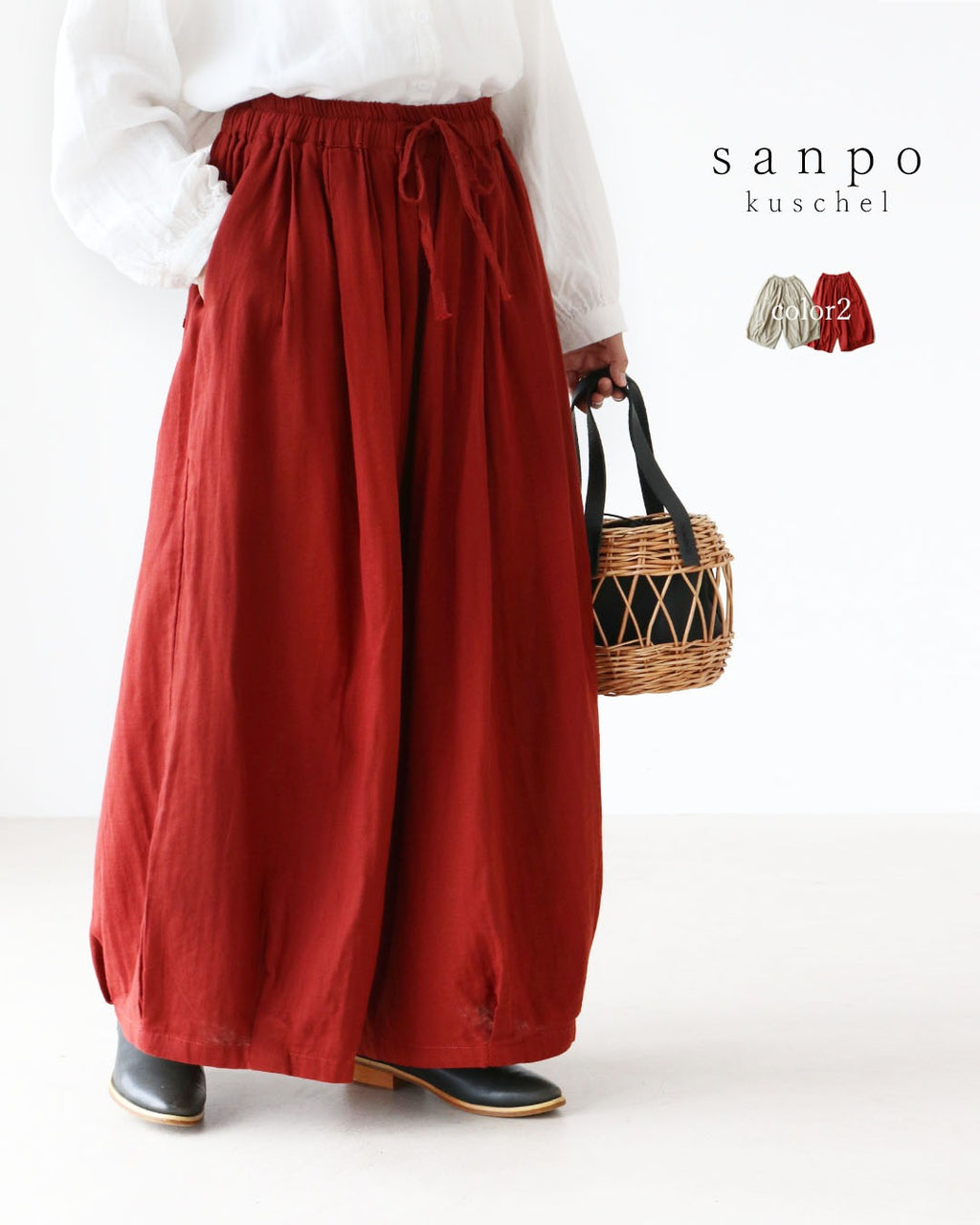 素材は綿100%で、肌触りが良く、透け感がないため安心してお使いいただけます。グレージュとレッドの2色展開で、幅広い年代に適しています。