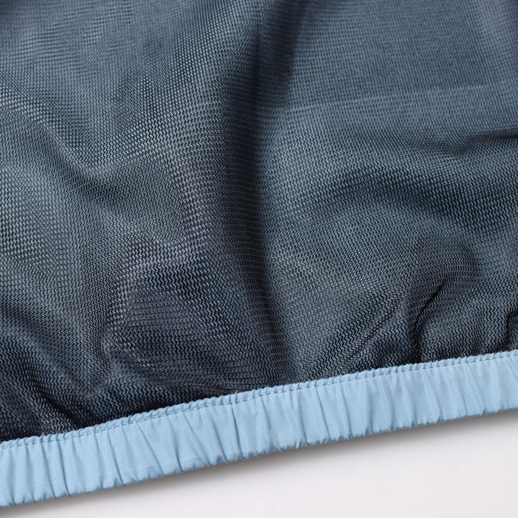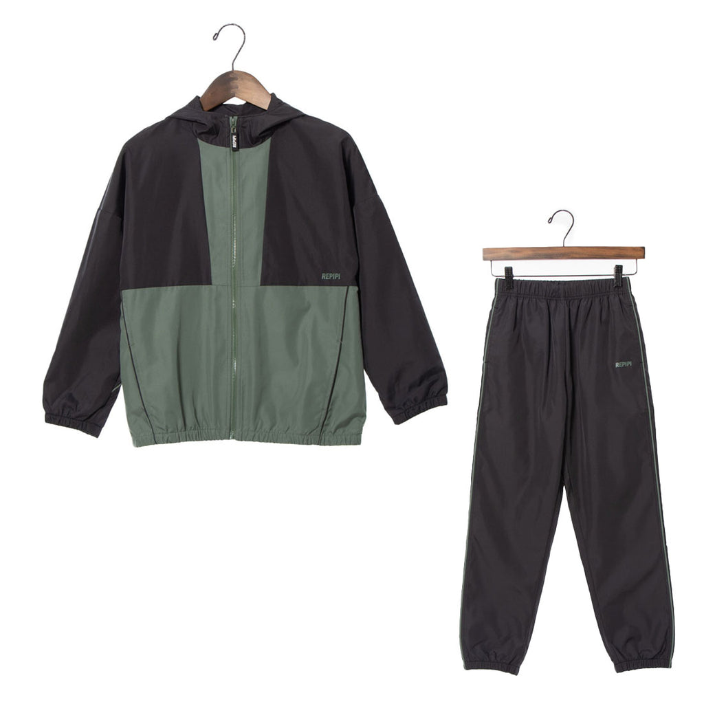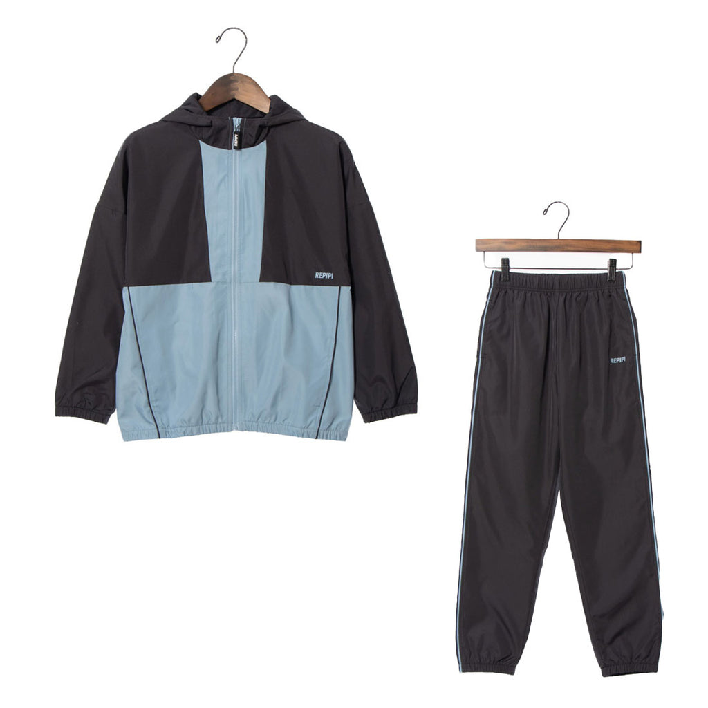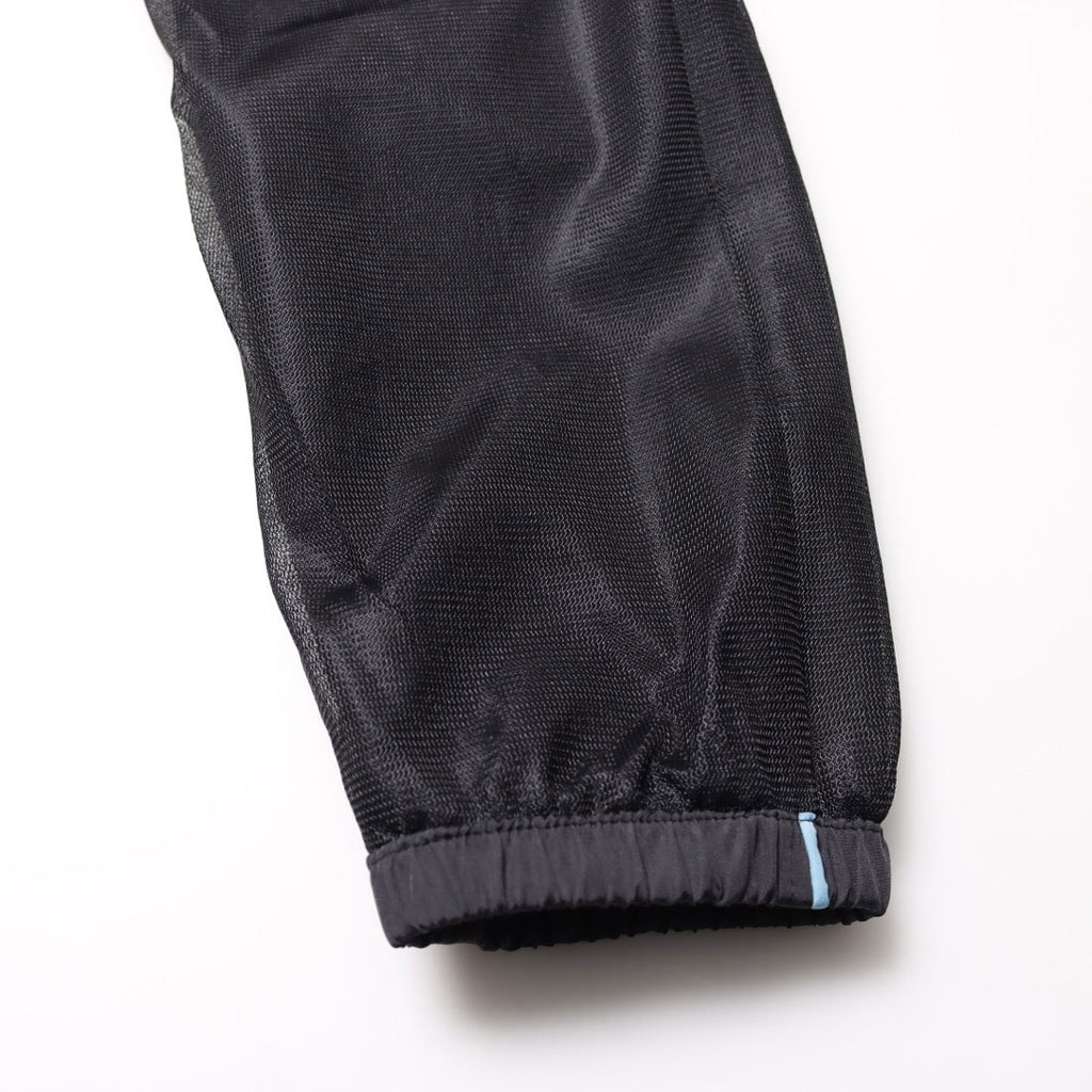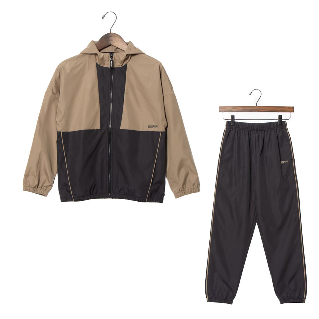 薄くて軽いポリエステル素材のパーカーとパンツのセットアイテムは裏メッシュ仕様なので汗をかいてもベタ付きにくくスポーツにもおすすめ。