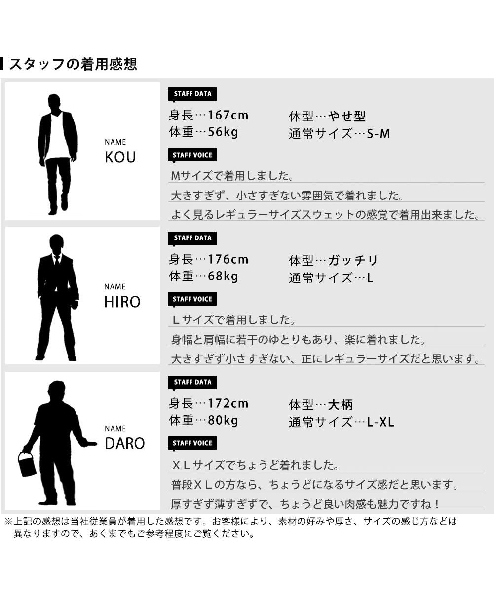 モデルサイズ: 身長:188cm 体重:69kg 普段の着用サイズ:L 着用サイズ:L