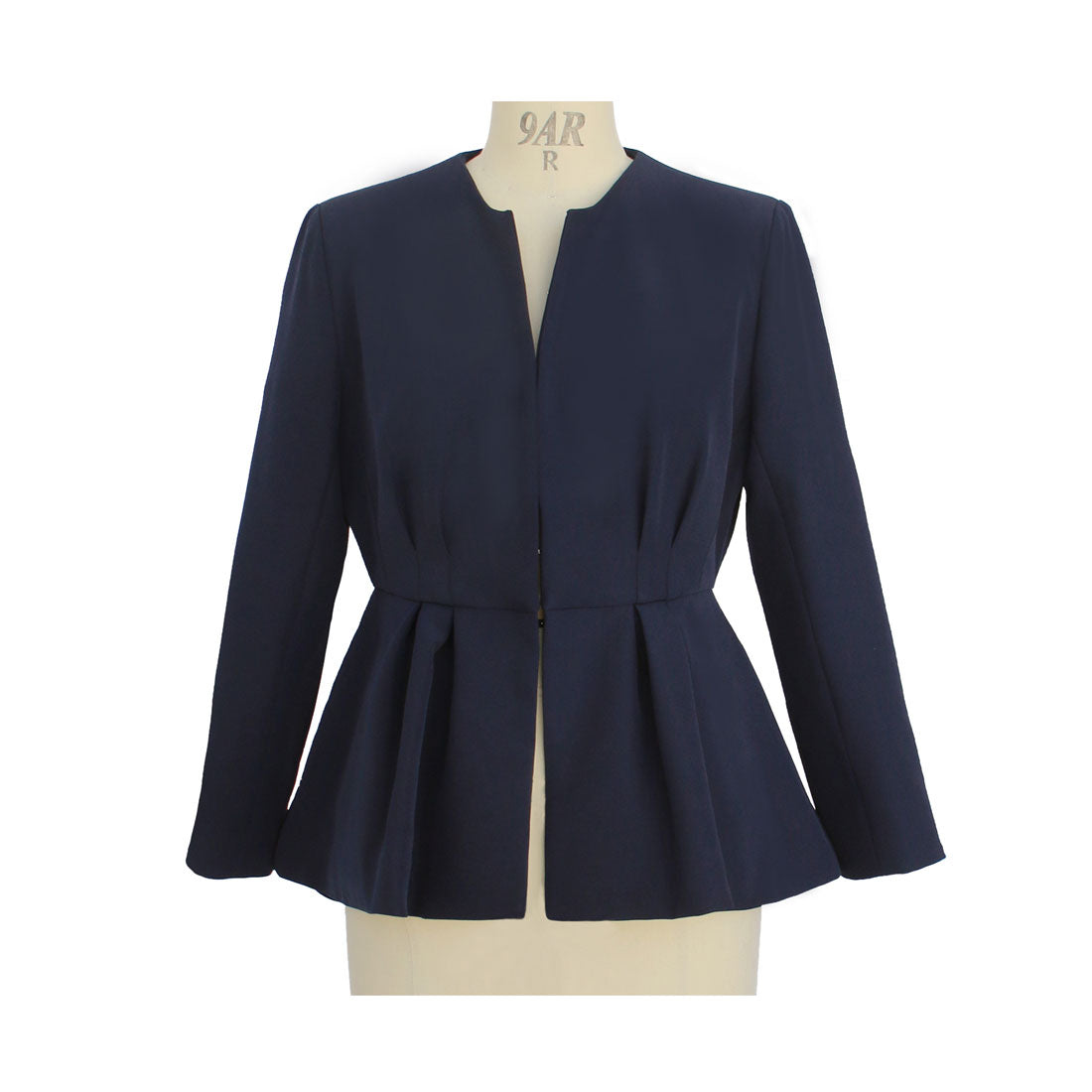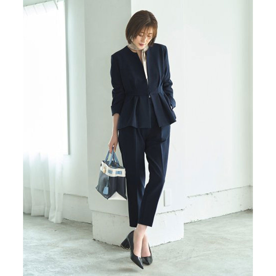 ふわりと広がるペプラムが女性らしさをプラスするジャケット、