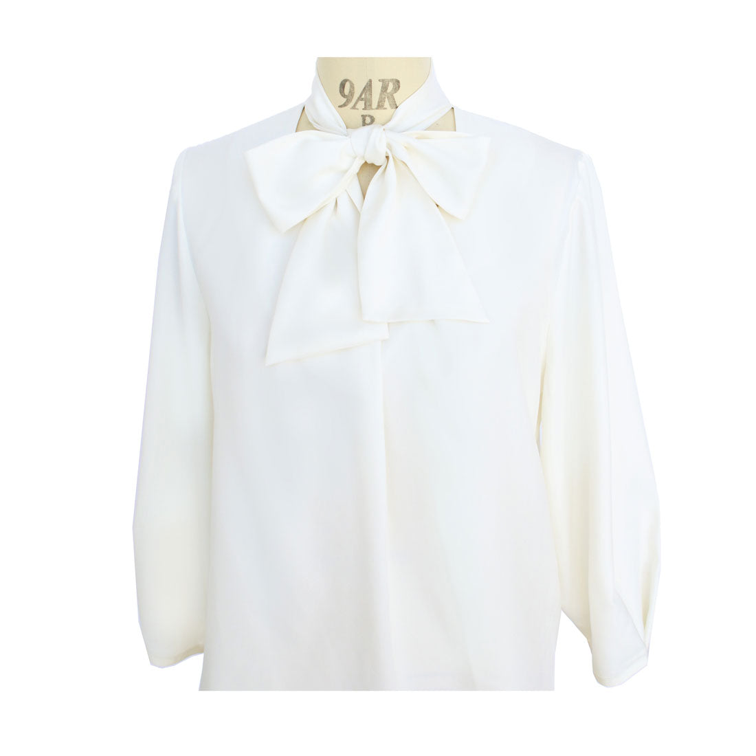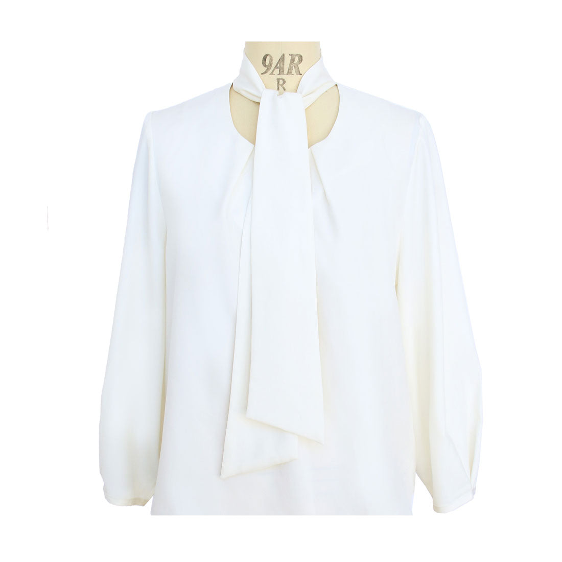 胸元のアクセントになるボウタイを、リボン結びにして女性らしく、