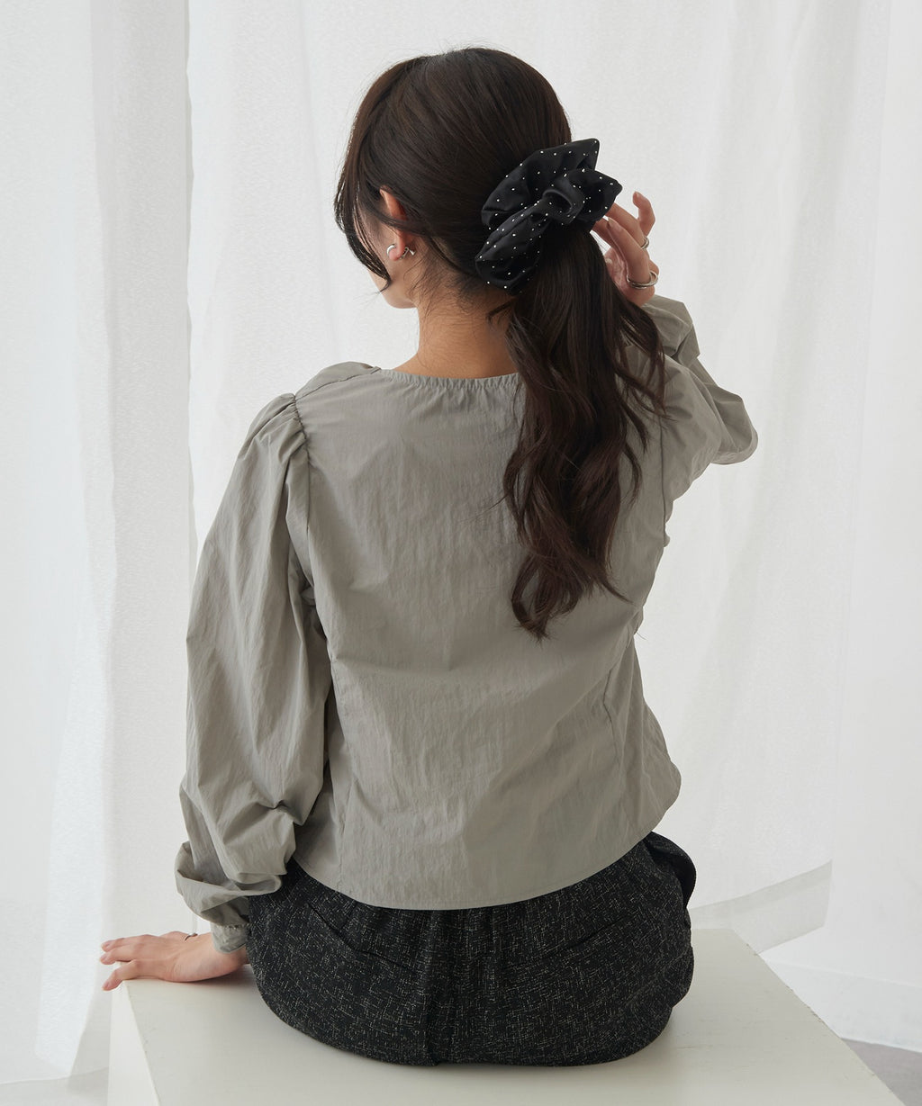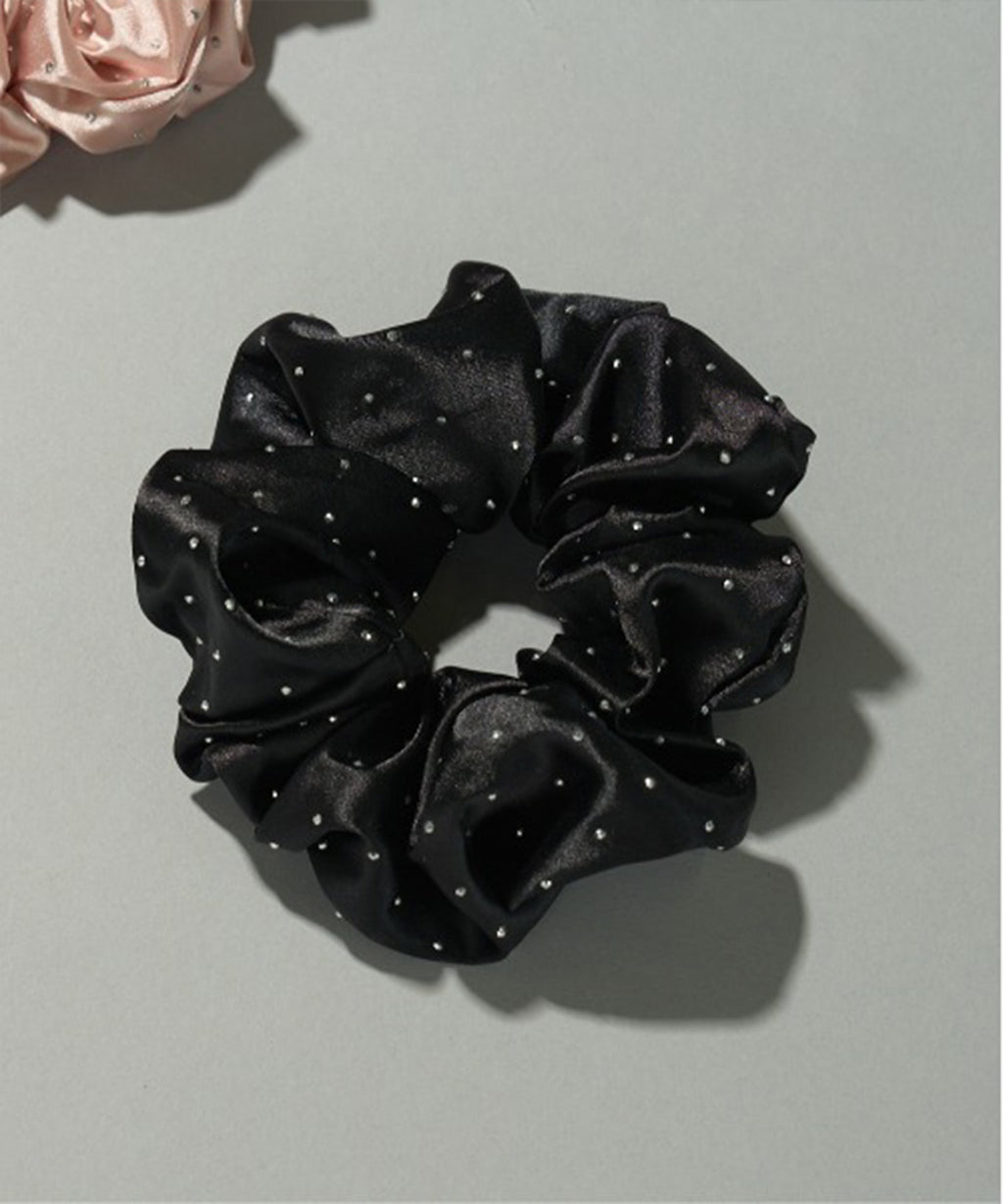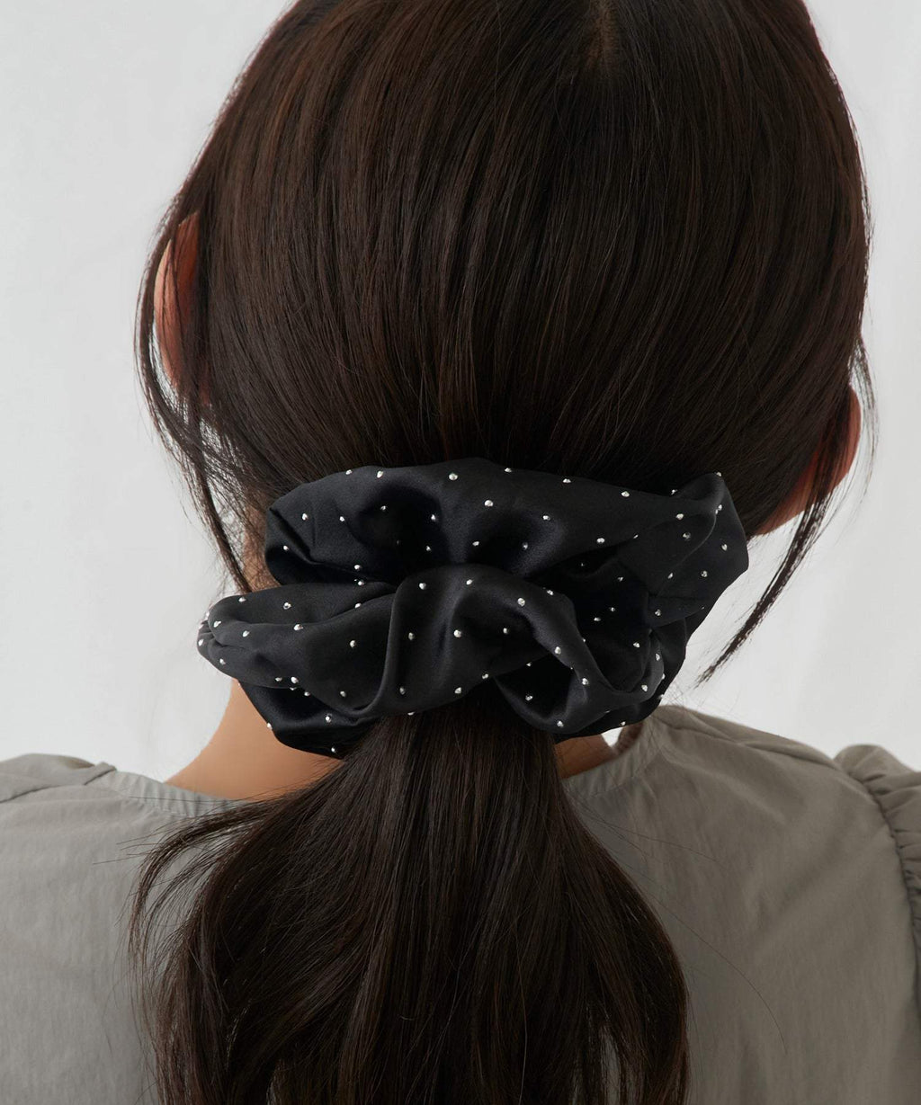 目を惹くドット柄と存在感のあるビッグサイズが魅力のシュシュ。