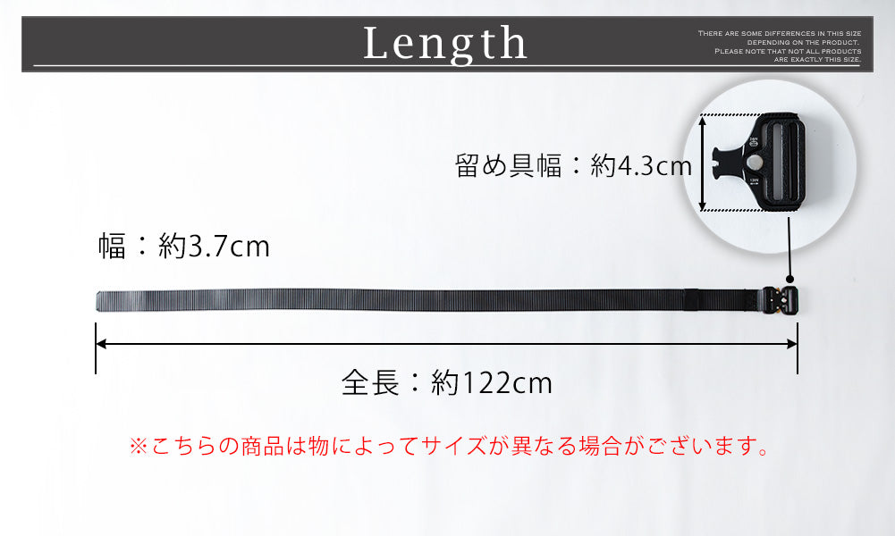 F(ワンサイズのみ) : 全長(約)122cm 幅(約)3.7cm 留め具幅(約)4.3cm