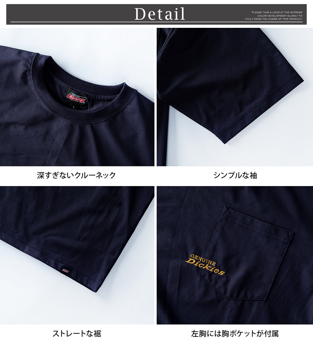 商品名:tシャツ 半袖 クルーネック ディッキーズ 胸ポケット 刺繍 GENUINE アメカジ Tシャツ 半袖tシャツ 春夏 ホワイト ドライ スミクロ 夏 大きいサイズ グレージュ