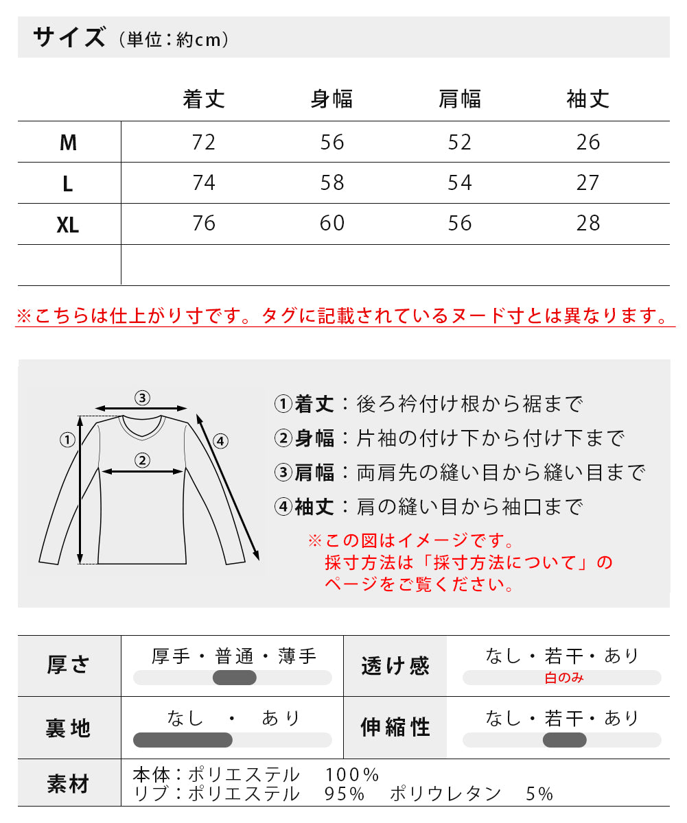 L : 着丈:74cm, 肩幅:54cm, 胸囲:116cm, 袖丈:27cm