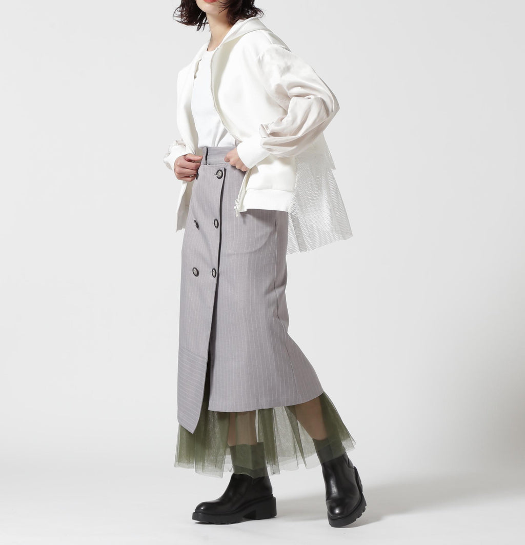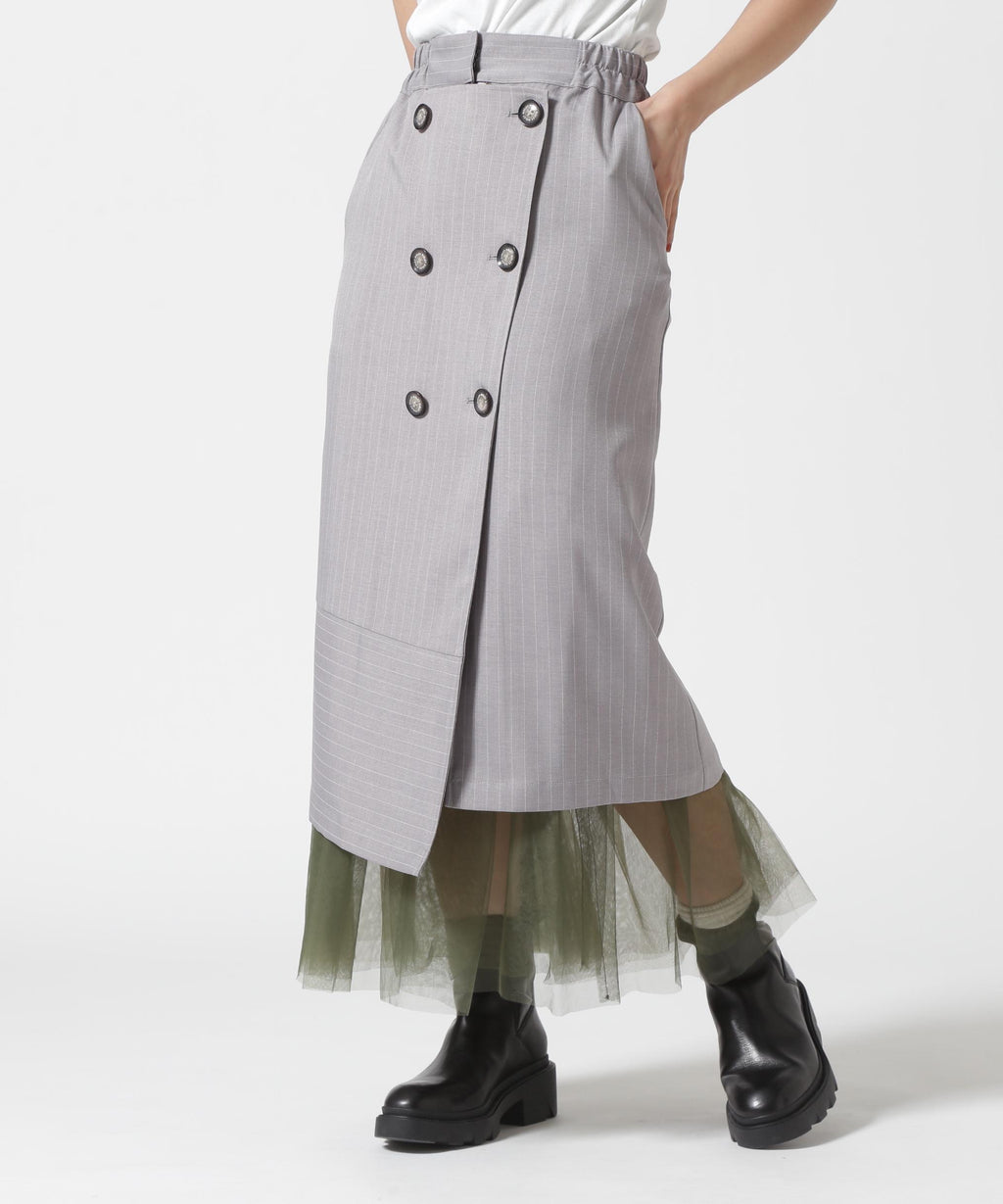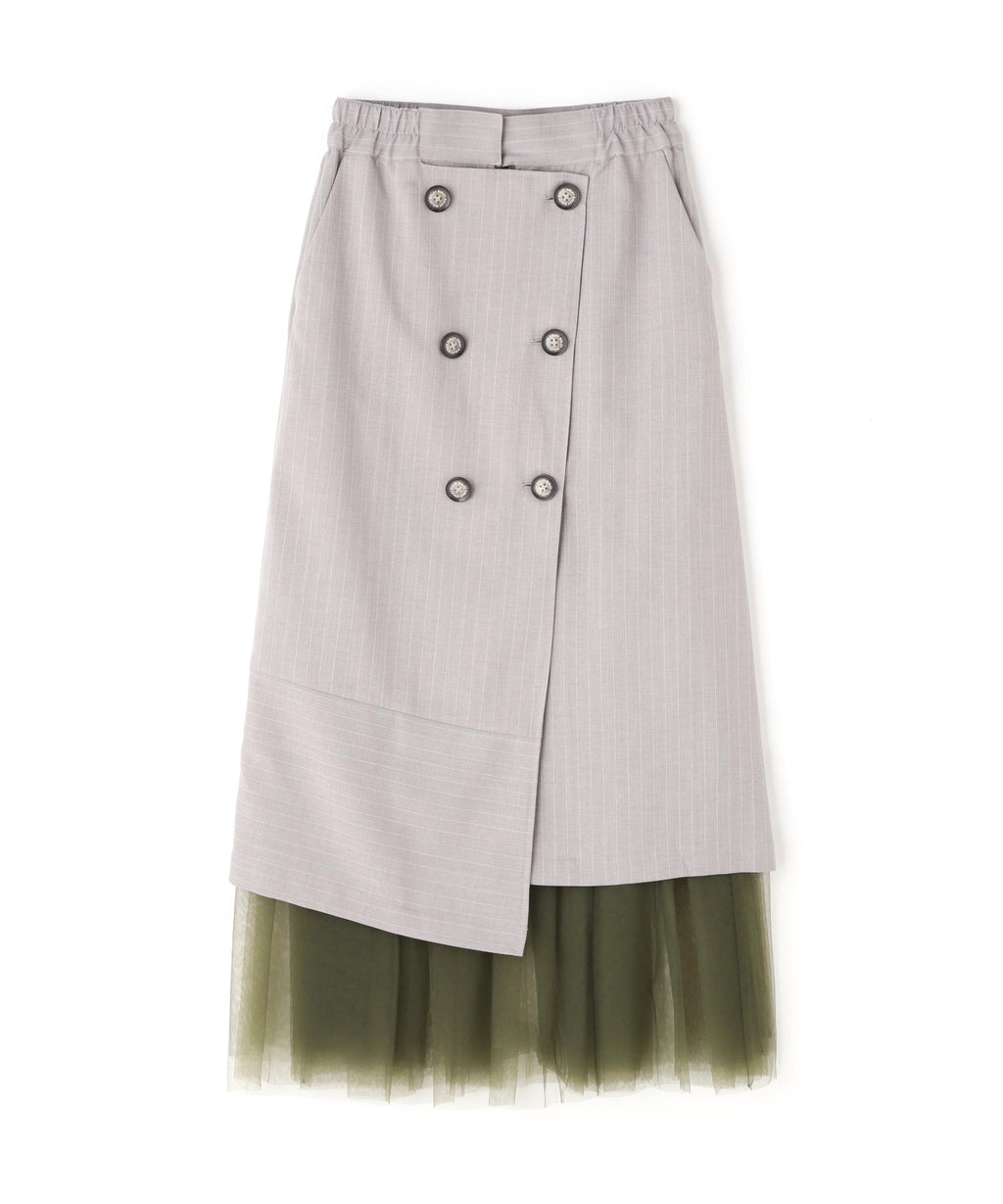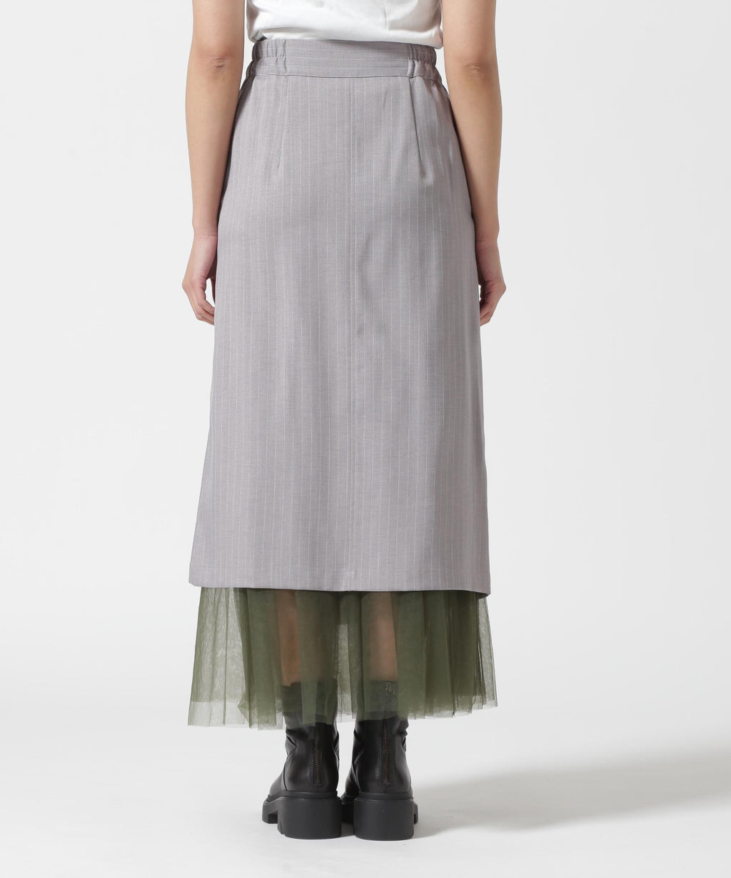 ストライプのスカートとチュールスカートがレイヤードになっているデザイン。