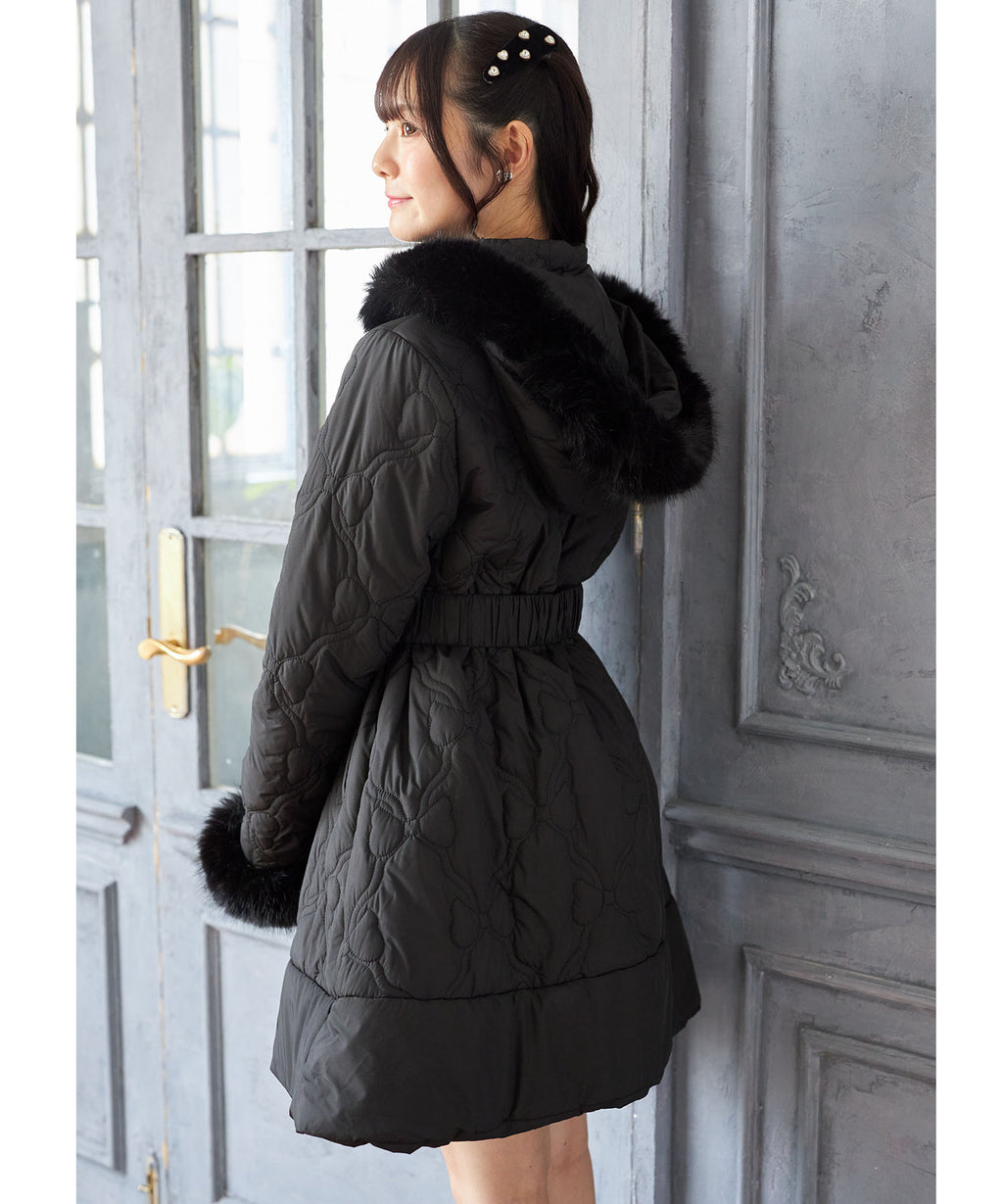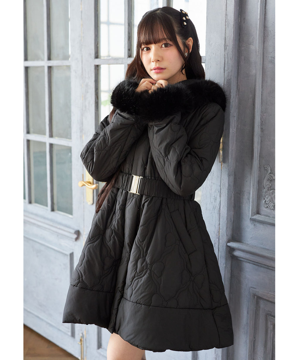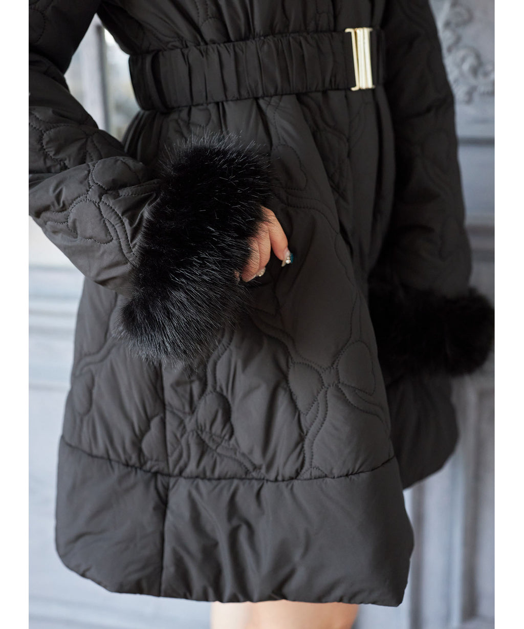 スユン Suyunn 取り外し可能なファー&ベルト付きリボンキルティングフィット&フレアコート