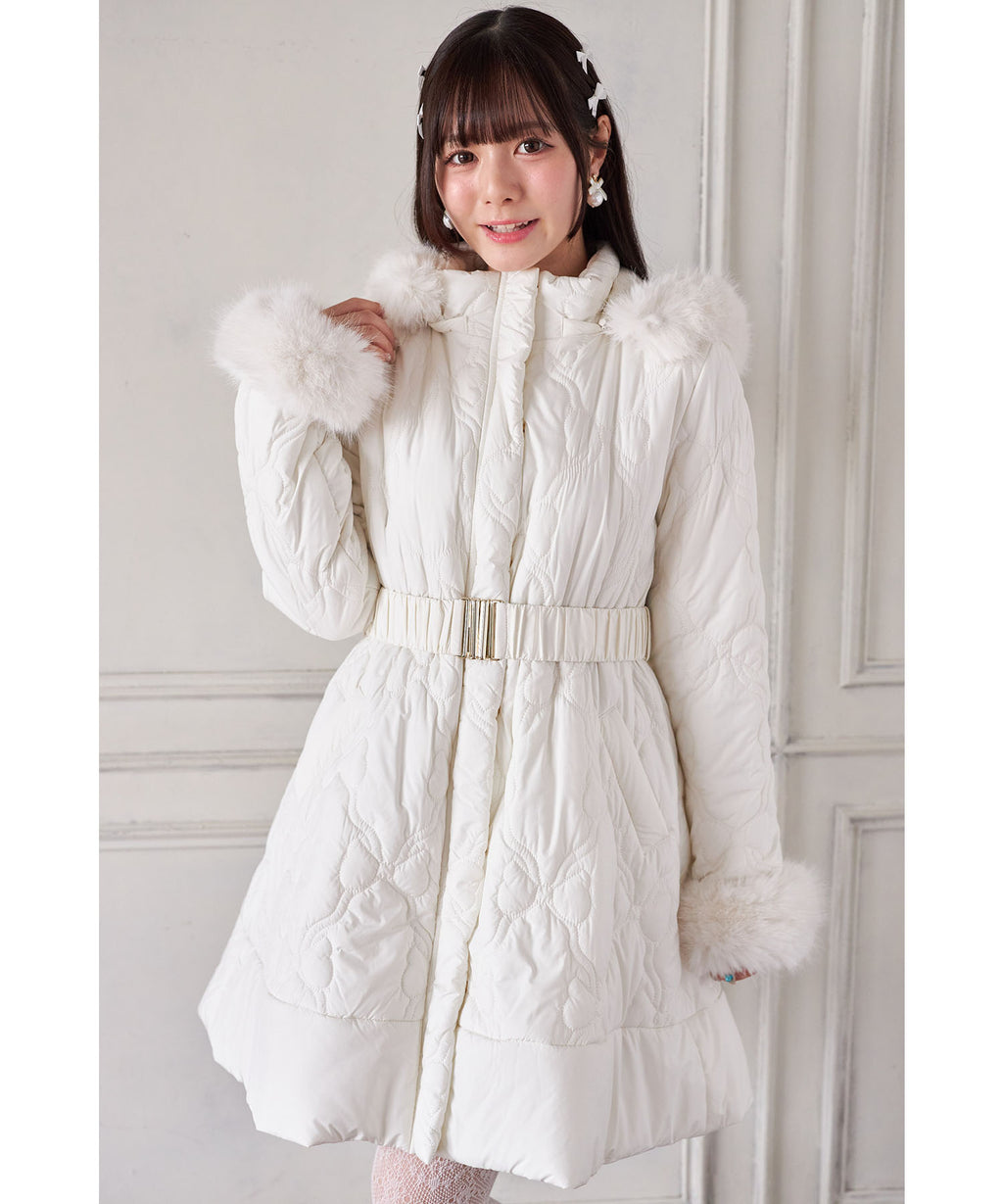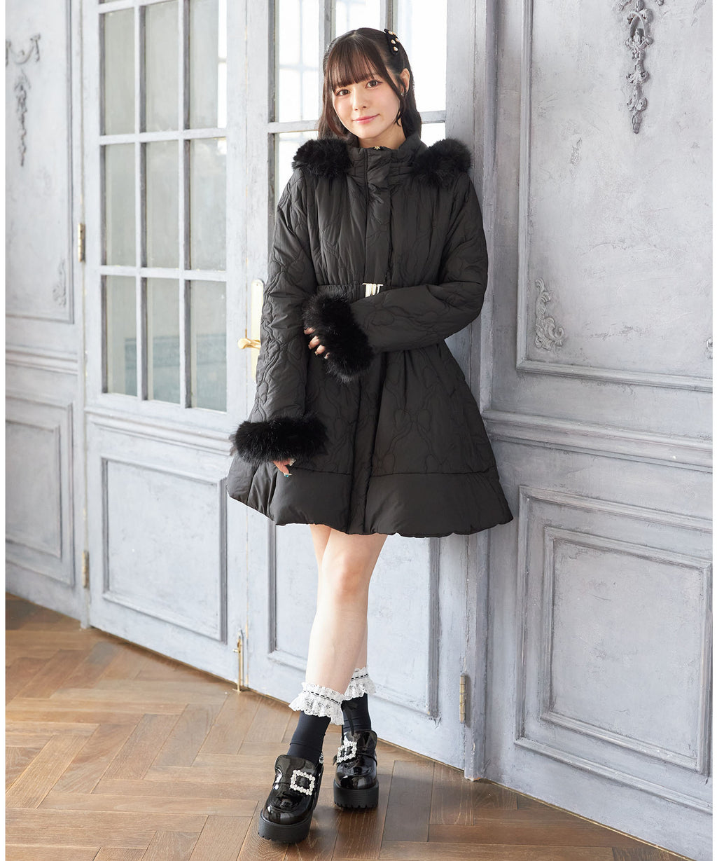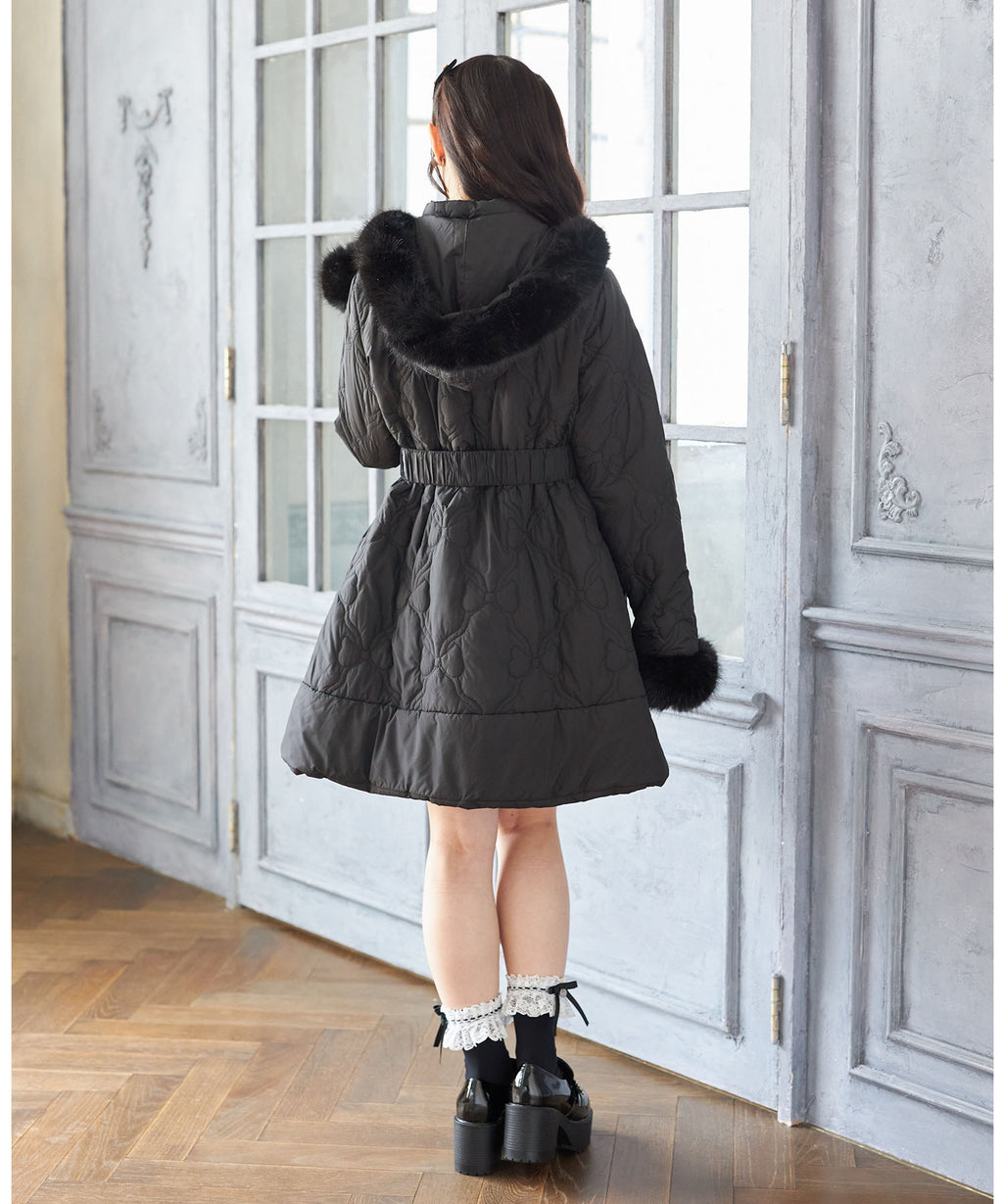 スユン Suyunn 取り外し可能なファー&ベルト付きリボンキルティングフィット&フレアコート