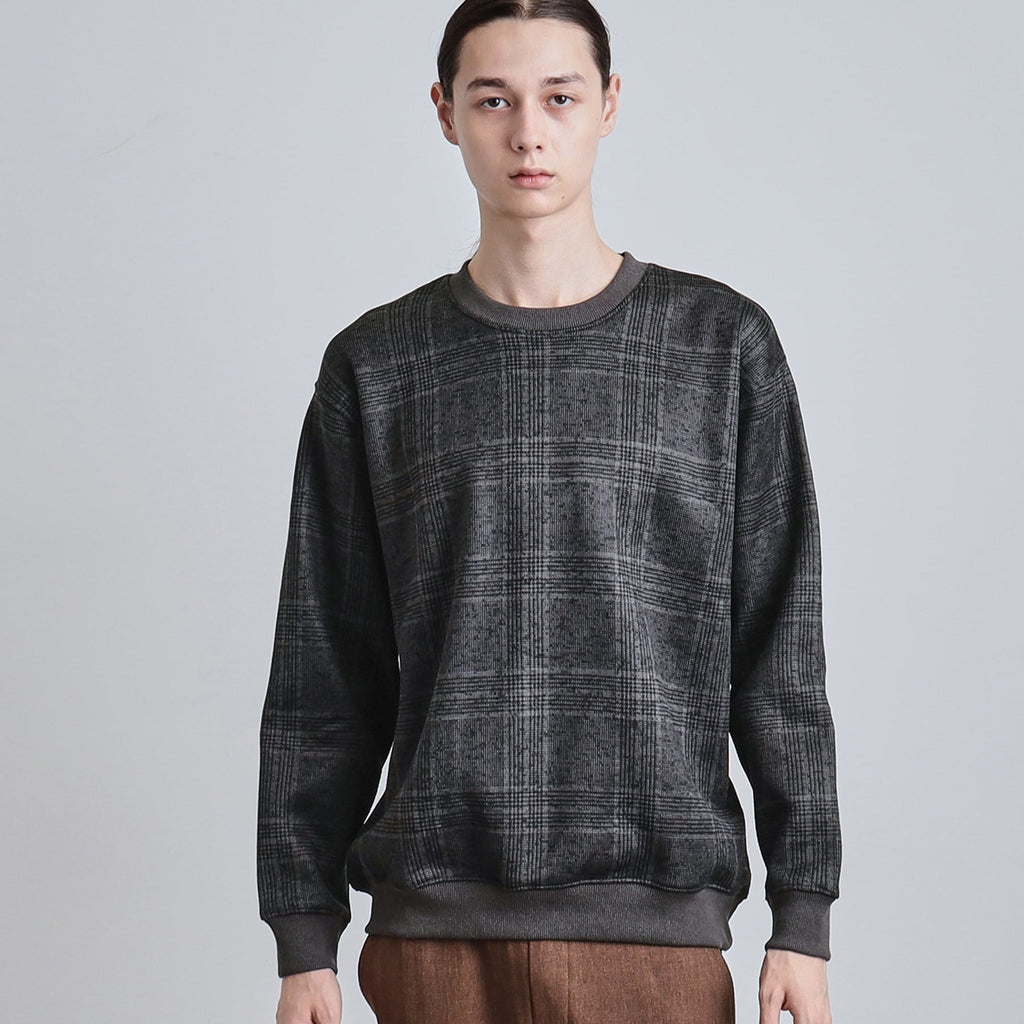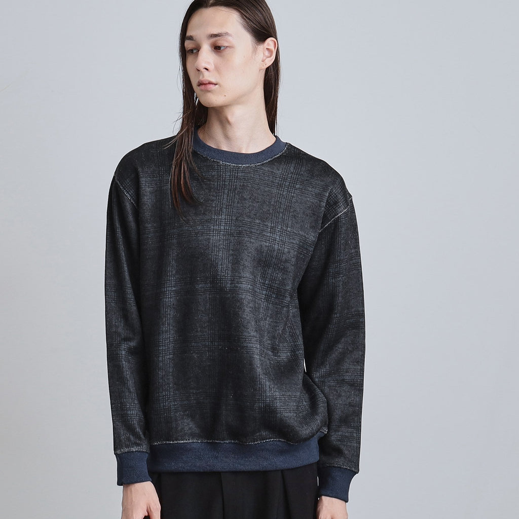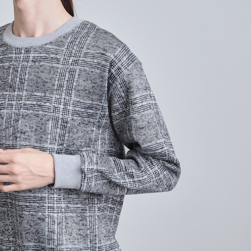 裏起毛ニットフリースにグレンチェックのプリントを施したスウェット。