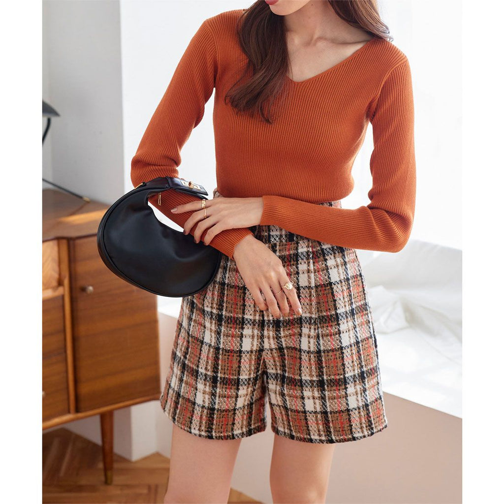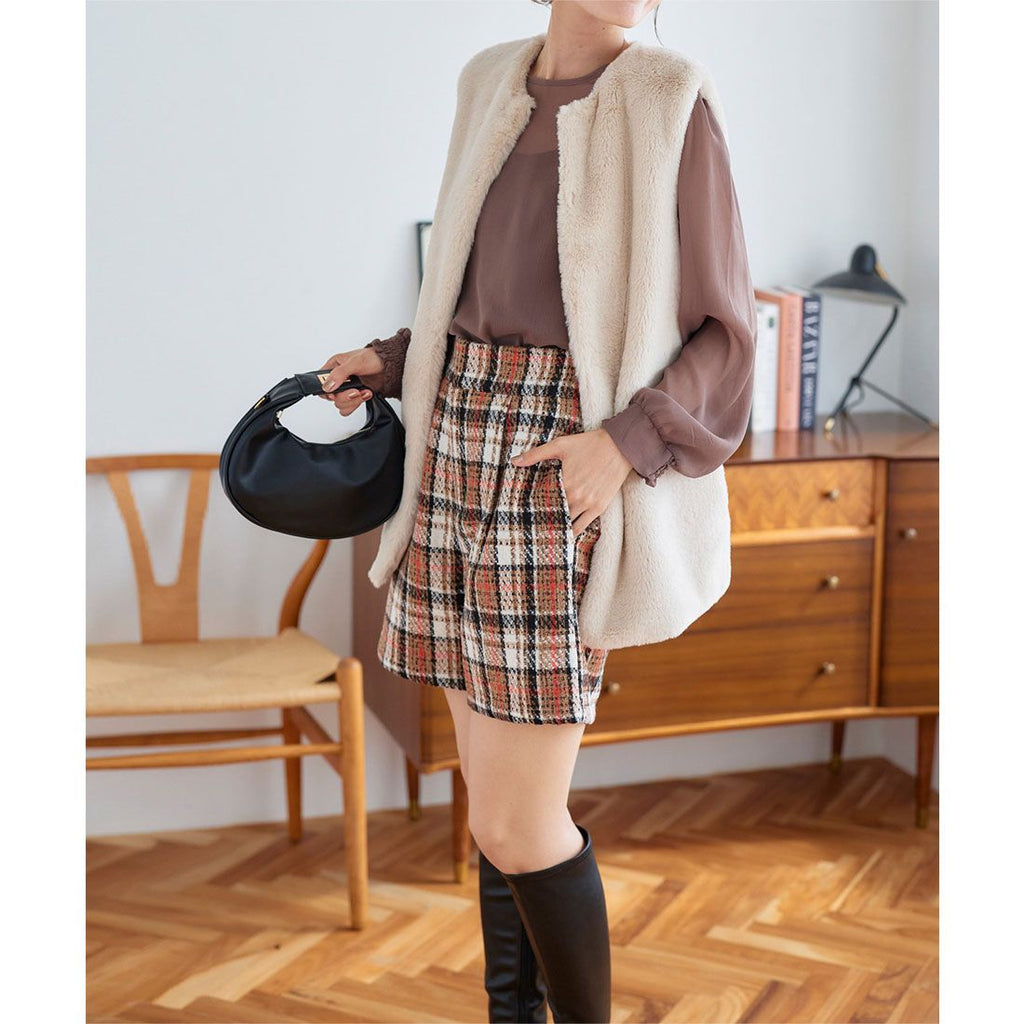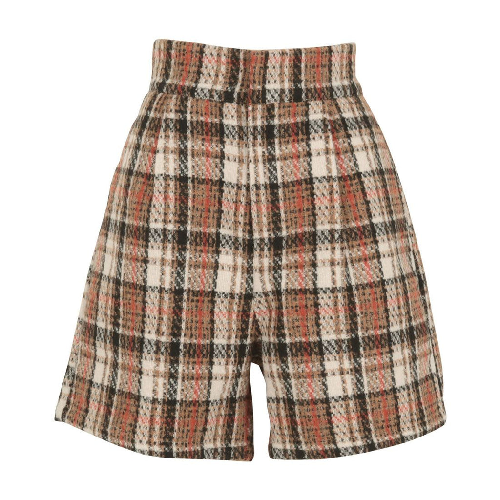 チェック柄 ハイウエスト ショートパンツ レディース ショーパン 秋冬 冬 秋 ボトムス ショート丈 チェック ミニボトム ミニ丈 バックゴム おしゃれ 高見え ポケット ポケットあり ポケット付き 裏地 裏地あり 裏地付き トレンド 20代 30代 お尻 ぽっちゃり [M3970]