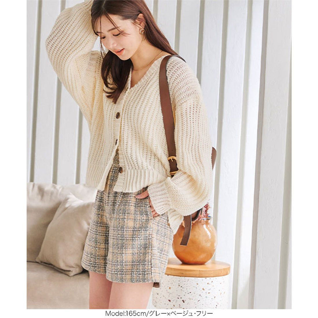 ◇コウベレタス KOBE LETTUCE 神戸レタス チェック柄ハイウエストショートパンツ [M3970](アイボリー×ブラウン)。