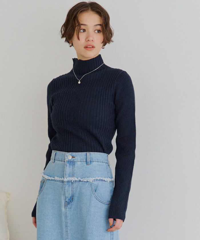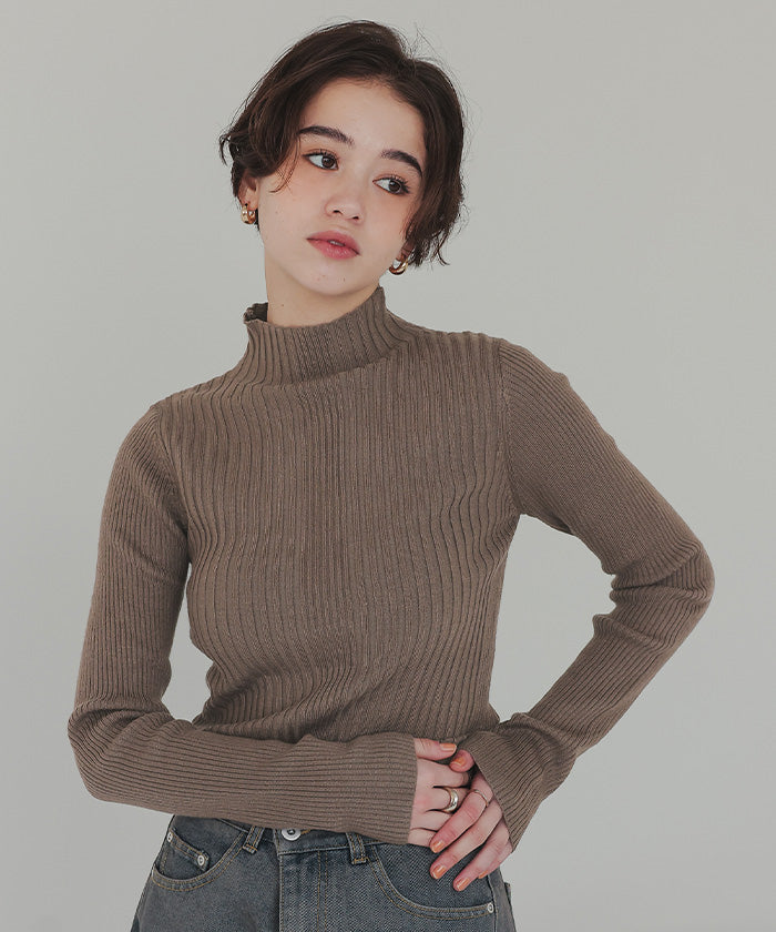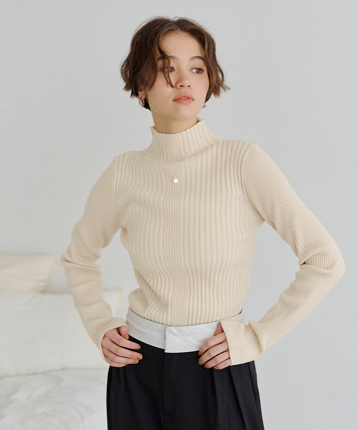 ティティベイト titivate ランダムリブハイネックニット