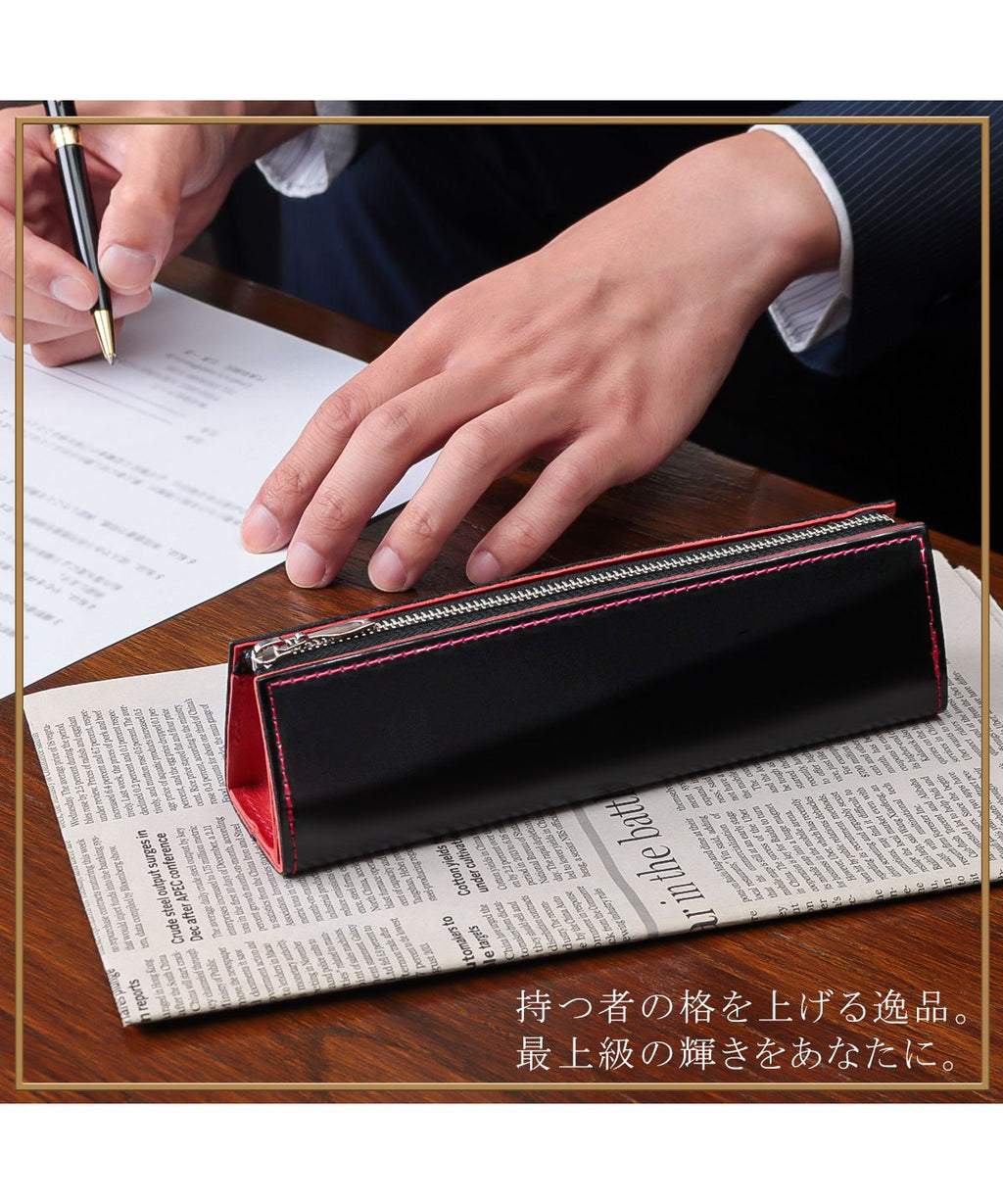 素材に最高級レザーのコードバンと栃木レザーを贅沢に使用したペンケースです。
