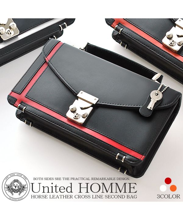カッズセレクト KAZZU SELECT セカンドバッグ メンズ 本革 鍵付き クロスライン 馬革 レザー クラッチバック バイカラー 【UHー2462】