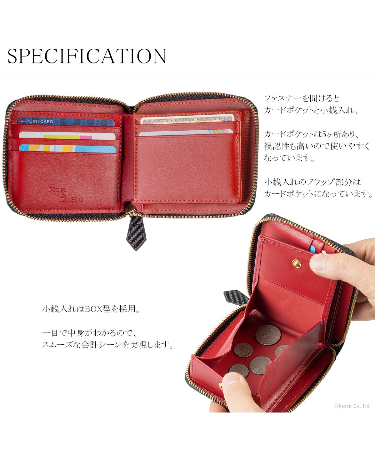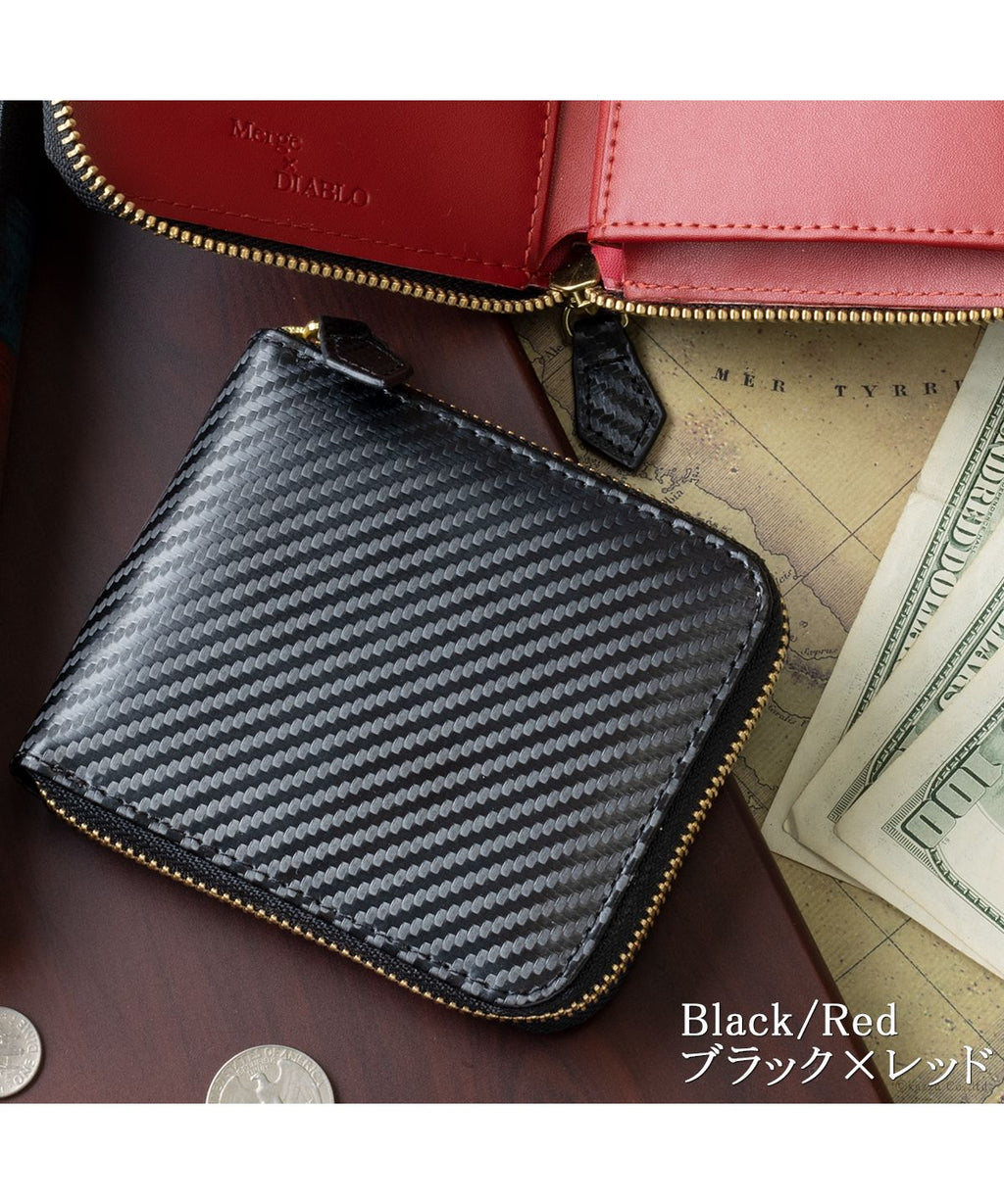 【ブラック】【黒】【レッド】【赤】【ブルー】【青】短財布 ラウンドファスナー ハーフウォレット カーボン 紳士 使いやすい 折り財布 財布 男性用 ビジネス かっこいい おしゃれ レッド ブルー ブランド Merge×DIABLO マージディアブロ ギフトボックス 送料無料 送料込み