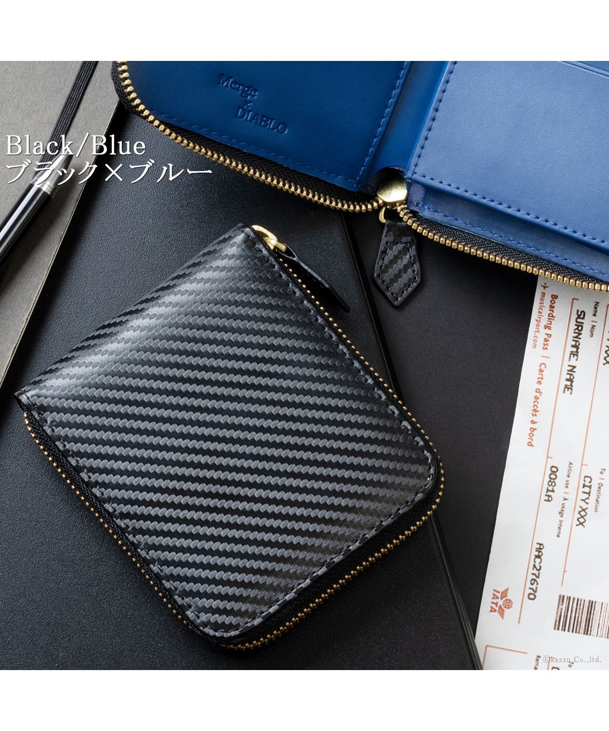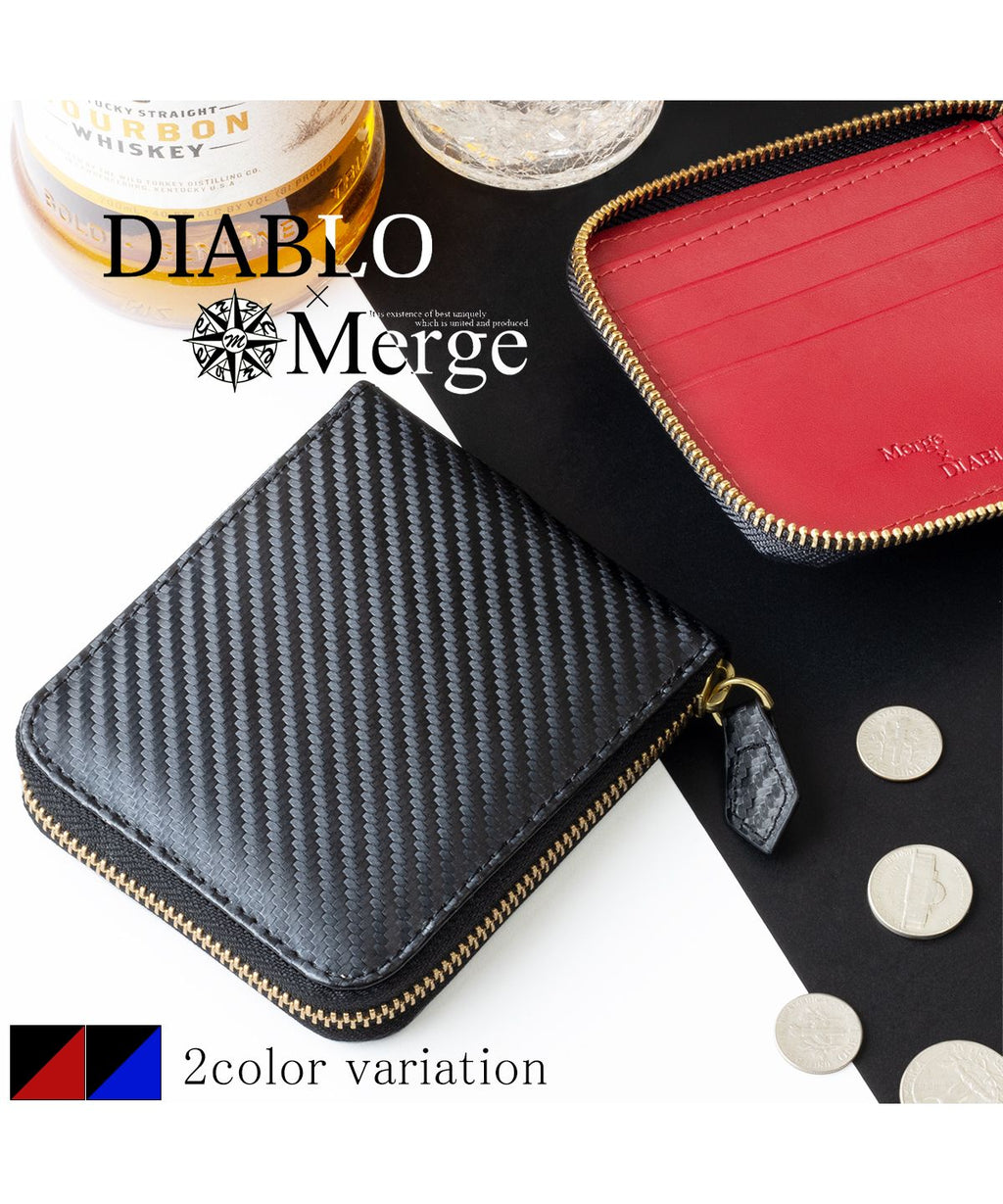 ディアブロ DIABLO 二つ折り財布 メンズ カーボン加工 ラウンドファスナー 革 ミニ財布 ラウンド財布 折り財布 Merge×DIABLO マージディアブロ MGDー1942