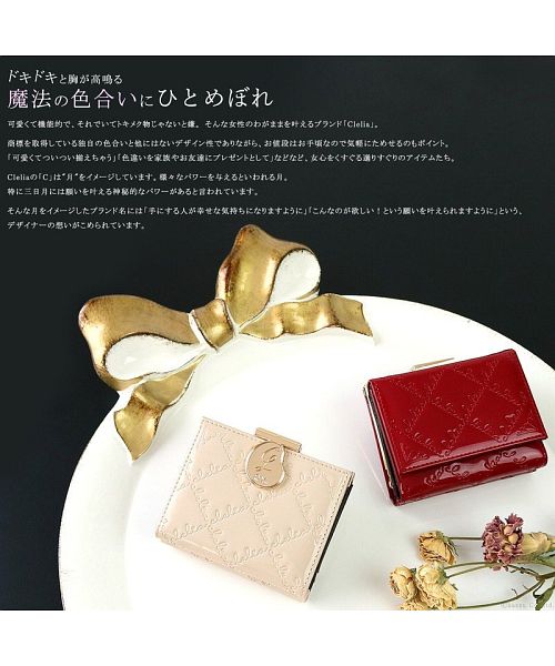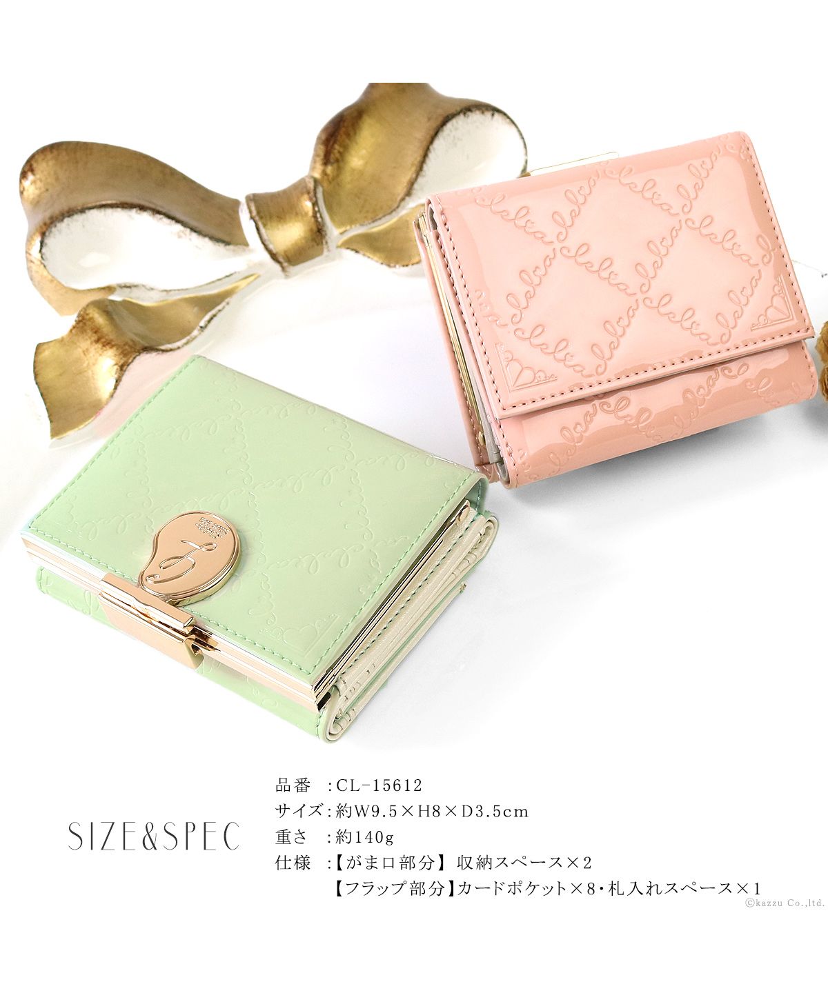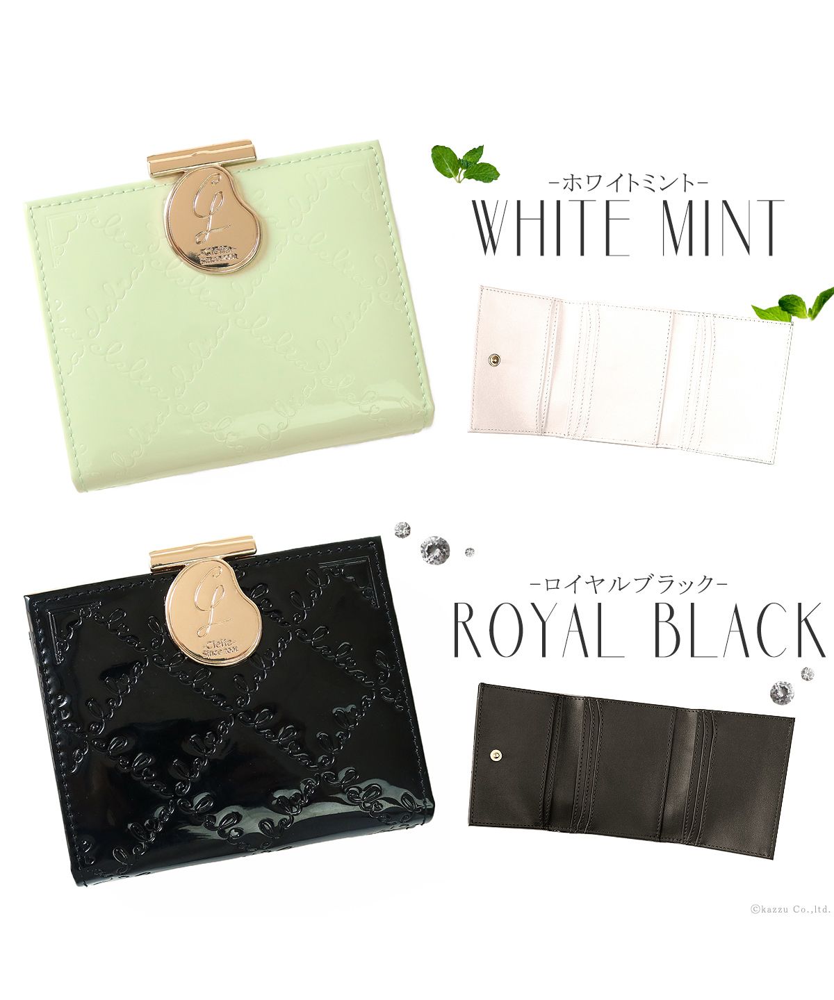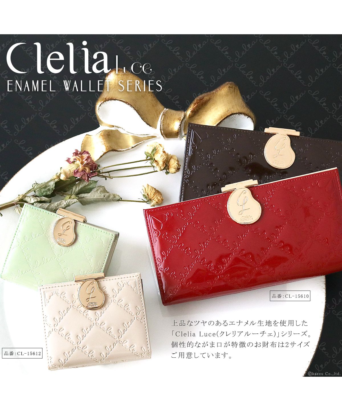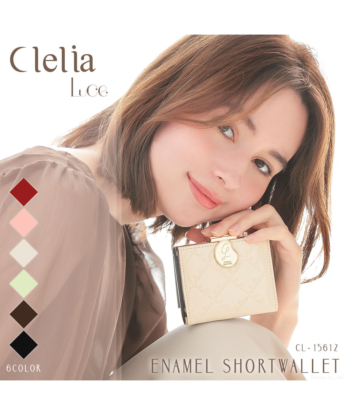 レッド 赤 ブラック 黒 ベージュ 白 ピンク 桃 ブラウン 茶 ミント 緑 ミニ財布 折り財布 レディース Clelia クレリア Luce ルーチェシリーズ がま口 エナメル フラップ 被せタイプ 高級感 ロゴ カラフル シンプル バイカラー かわいい オシャレ キレイ ブランド フェイクレザー 折財布 ショートウォレット 極小財布 小さい 小さめ コンパクト 手のひらサイズ