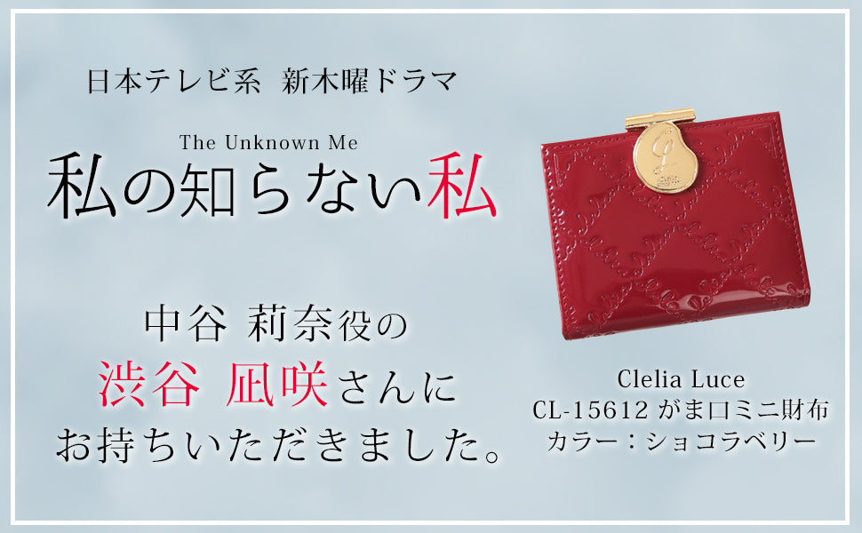 今までになかったがま口タイプとエナメル生地の高級感のある新しいデザインのCleliaのお財布です。