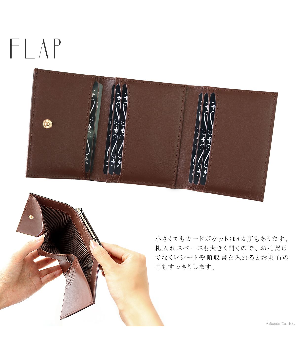 使い勝手抜群のがま口とフラップタイプを組み合わせた、使うたびに気分が上がる折り財布です。