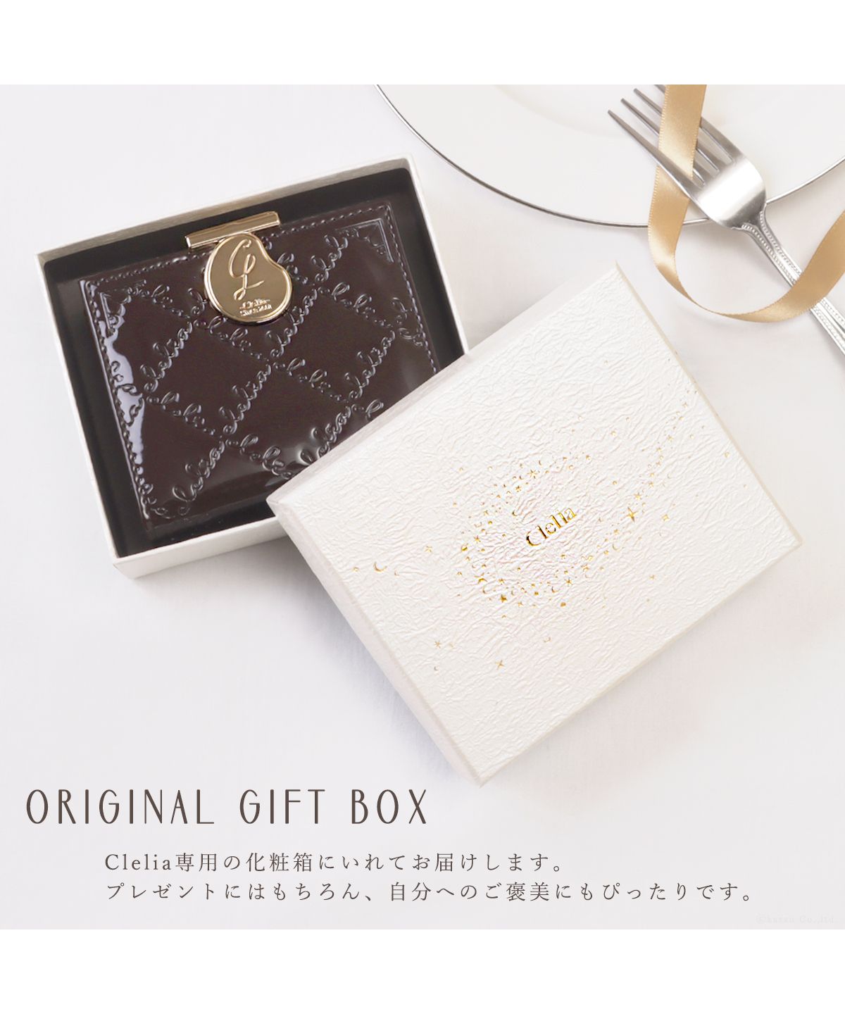 財布一面にCleliaのロゴが並んだシンプルながらも大人かわいいデザイン。