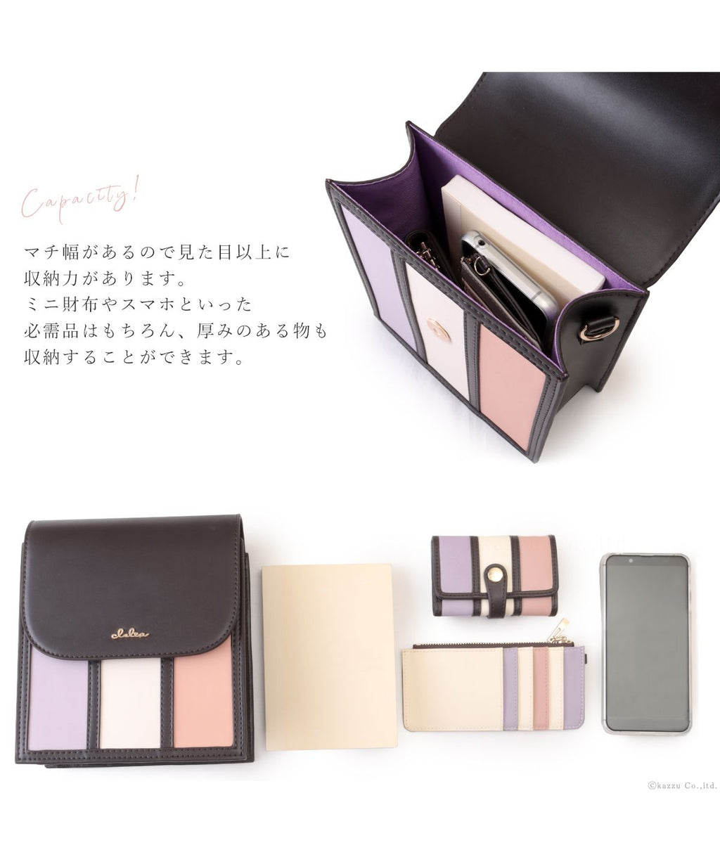 ホワイト 白 ピンク パープル 青 水色 ブルー ブラウン 茶色 グレー ショルダーバッグ ミニバッグ スマホショルダー スマホポーチ スクエアバッグ サブバッグ レディース 女性用 Clelia クレリア ブランド ストライプ カラフル スクエア 箱型 フラップ かぶせ 可愛い きれいめ 大人 カジュアル 斜め掛け 斜めがけ お出かけ おでかけ スマホ 財布 合皮 おすすめ 旅行 フェス 20代 30代 40代 50代 Bellezza