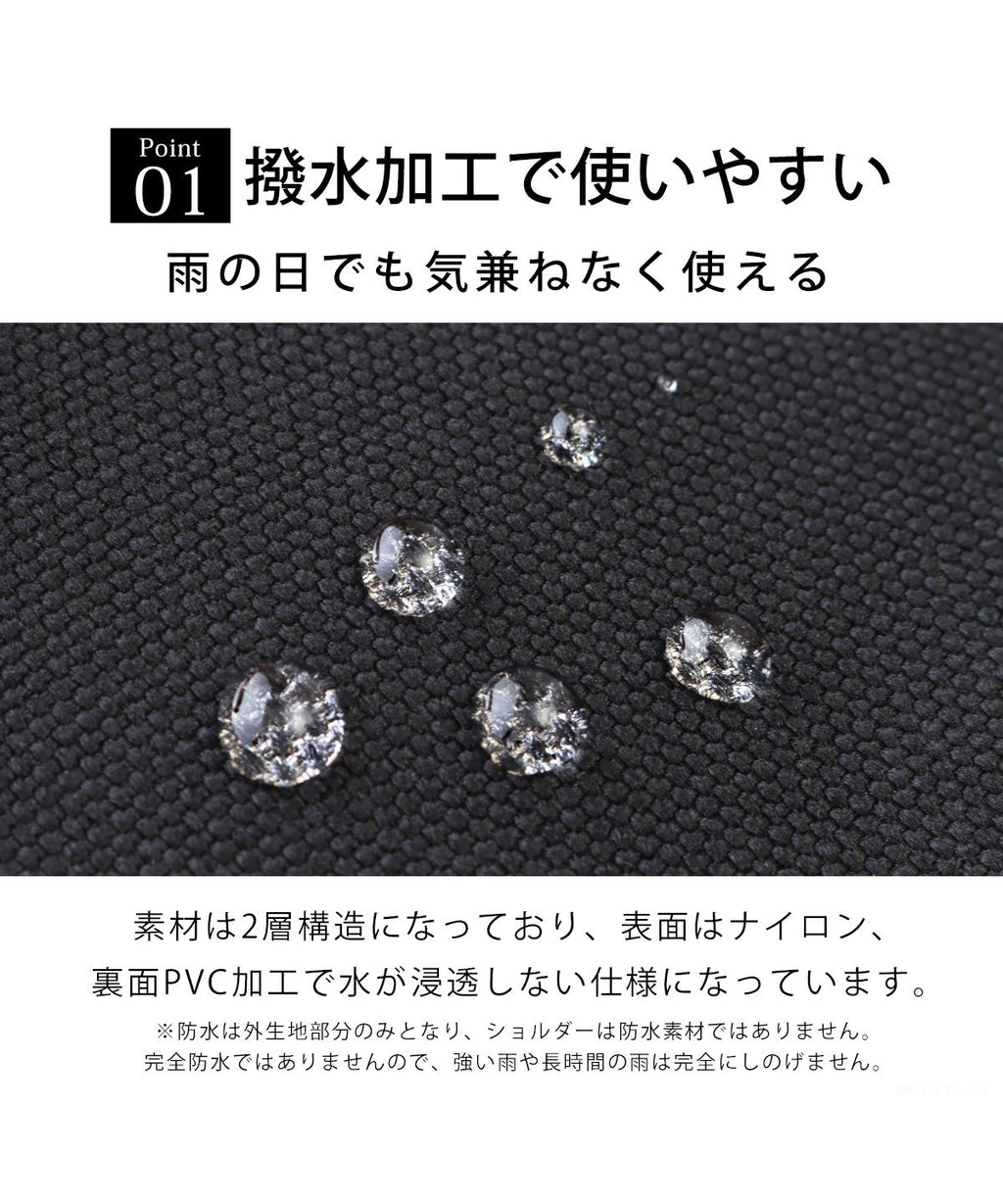 素材は2層構造になっており、表面はナイロン、裏面PVC加工で水が浸透しない仕様になっています。