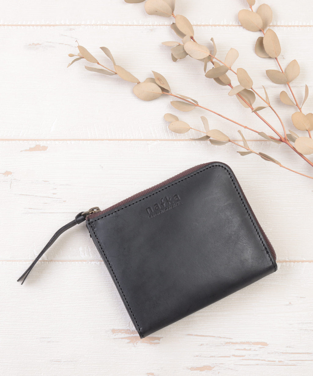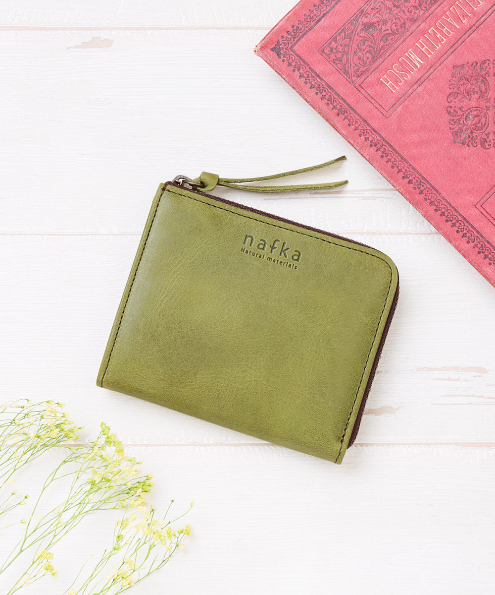 ナフカ nafka 財布 レディース 二つ折り コンパクト 薄い 薄型 スリム 小さい L字ファスナー 本革 牛革 モストロレザー 日本製 シンプル ナチュラル かわいい おしゃれ