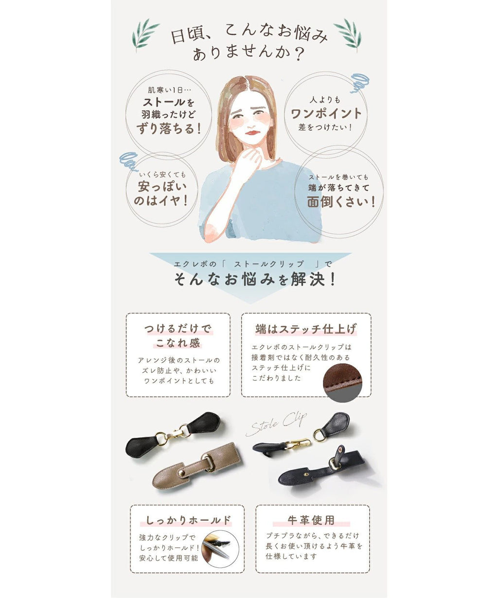 エクレボ exrevo ストールクリップ レザー 革 本革 シンプル ずれない ズレ防止 大判 カーディガン リング ストール クリップ ステッチ カバー付き 秋冬 母の日 ベルト
