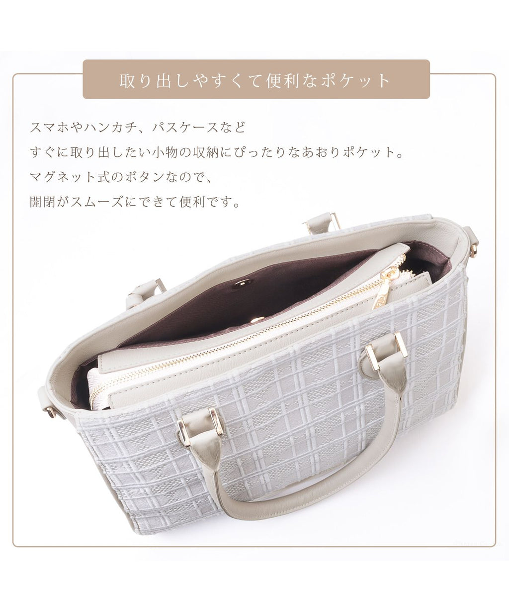 刺繍によって織り成された気品のあるデザインは、持ち主の魅力を引き立ててくれます。