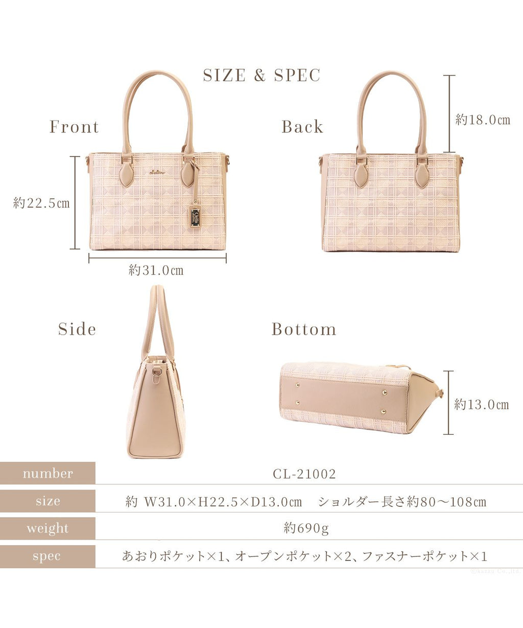 ピンク ベージュ グレー 桃 灰 バッグ 鞄 かばん ショルダーベルト付き 女 女性用 女性 可愛い カワイイ 本革 レザー フェイクレザー 刺繍 総柄 上品 お洒落 オシャレ B5 機能的 機能的 実用的 軽量 20代 30代 40代 50代 60代 大人 仕事用 彼女 妻 お母さん 同僚 後輩 上司 先輩 Clelia クレリア COLORER