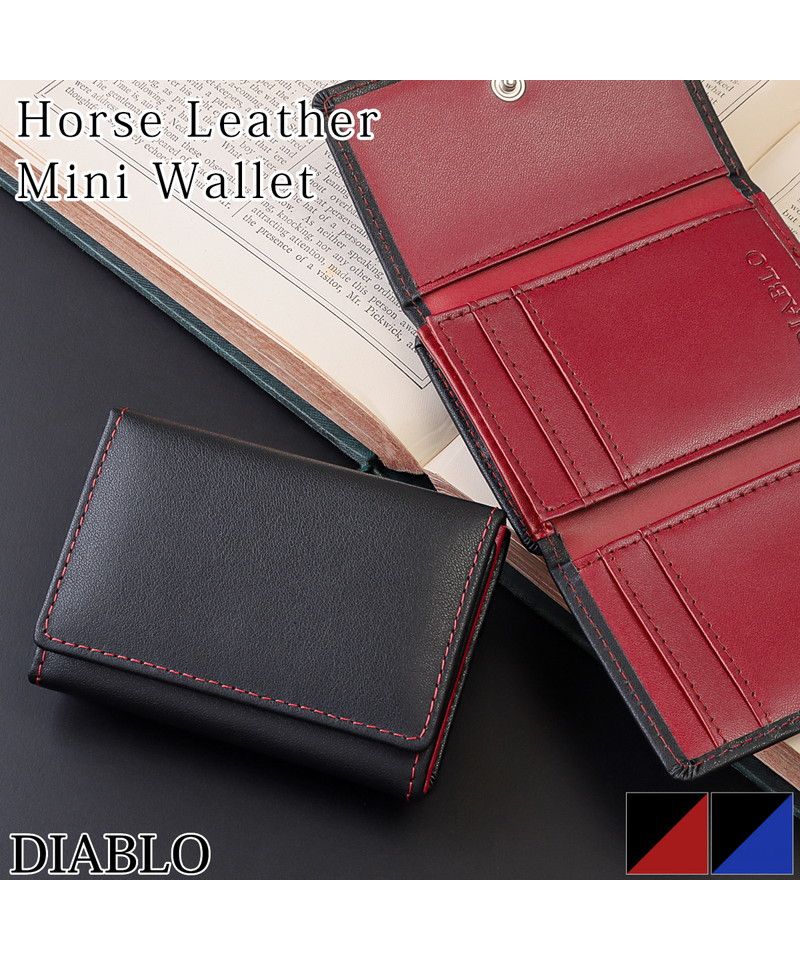 【ブラック】【黒】【レッド】【赤】【ブルー】【青】三つ折り財布 財布 ウォレット ミニ財布 コンパクト 三つ折り エコレザー ホースレザー メンズ 男性用 紳士 ビジネス キャッシュレス DIABLO ディアブロ ブランド かっこいい おしゃれ KA-516